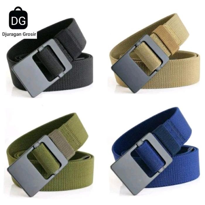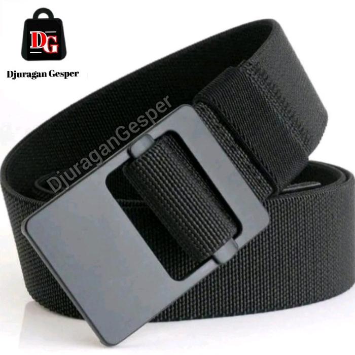 Gesper Ikat Pinggang Pria dan Wanita Sabuk Katun Polos Model Kepala Geser Hitam polos Tebal - HITAM