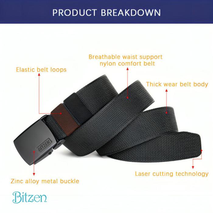Bitzen Ikat Pinggang Pria Nylon Canvas Sabuk Berkualitas Premium - Hitam 120