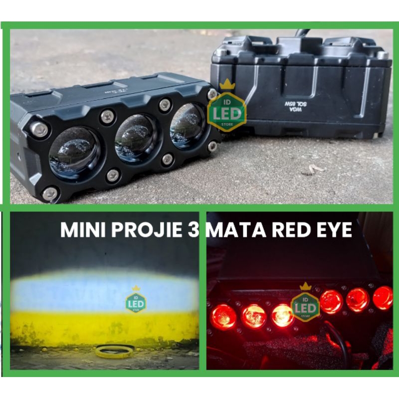 FLASH SALE Lampu Tembak Kabut LED Laser Gun SQL 3 mata Red Eyes 85 Watt Mini Projie 3 mata Putih Kuning Devil Merah