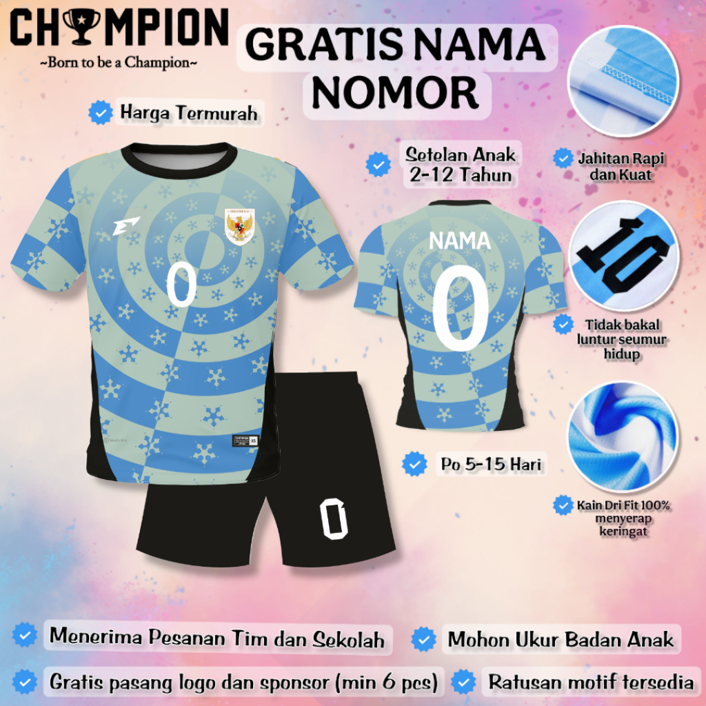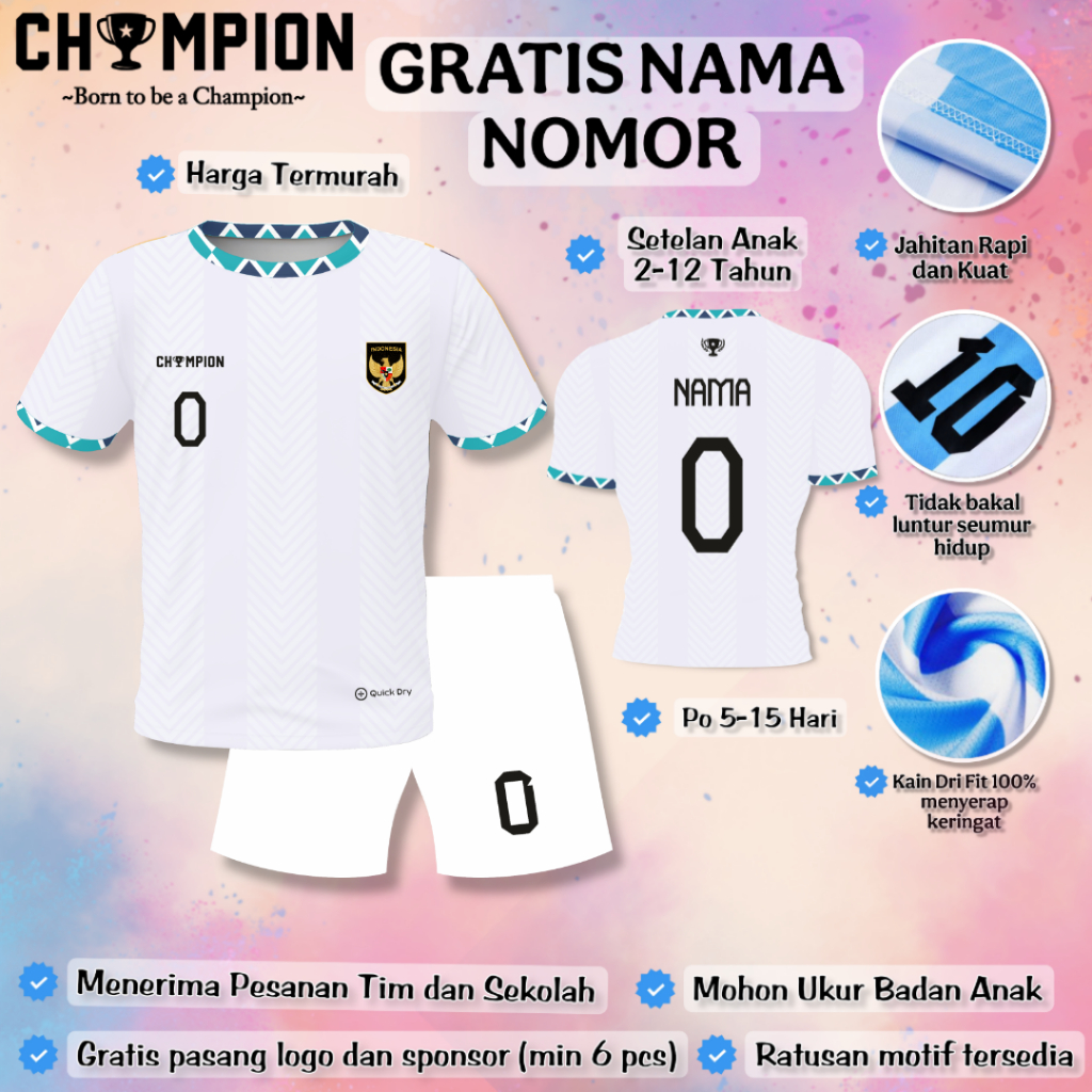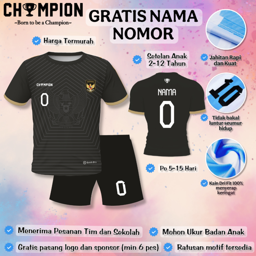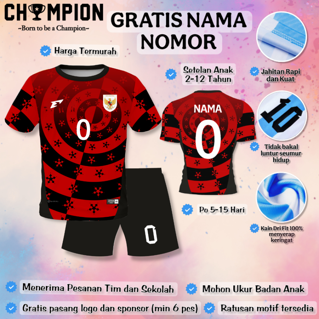 (GRATIS NAMA NOMOR) Setelan Baju Timnas 2025 Anak / Setelan Baju Bola Anak / Setelan Futsal Anak