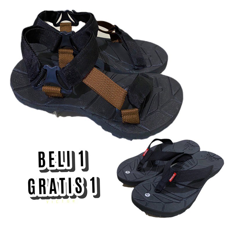Promo Beli 1 Gratis 1 Sandal Gunung Dewasa Pria Wanita Upper Polyster Webbing+Universal Strapping - Ukuran Jumbo Size 36