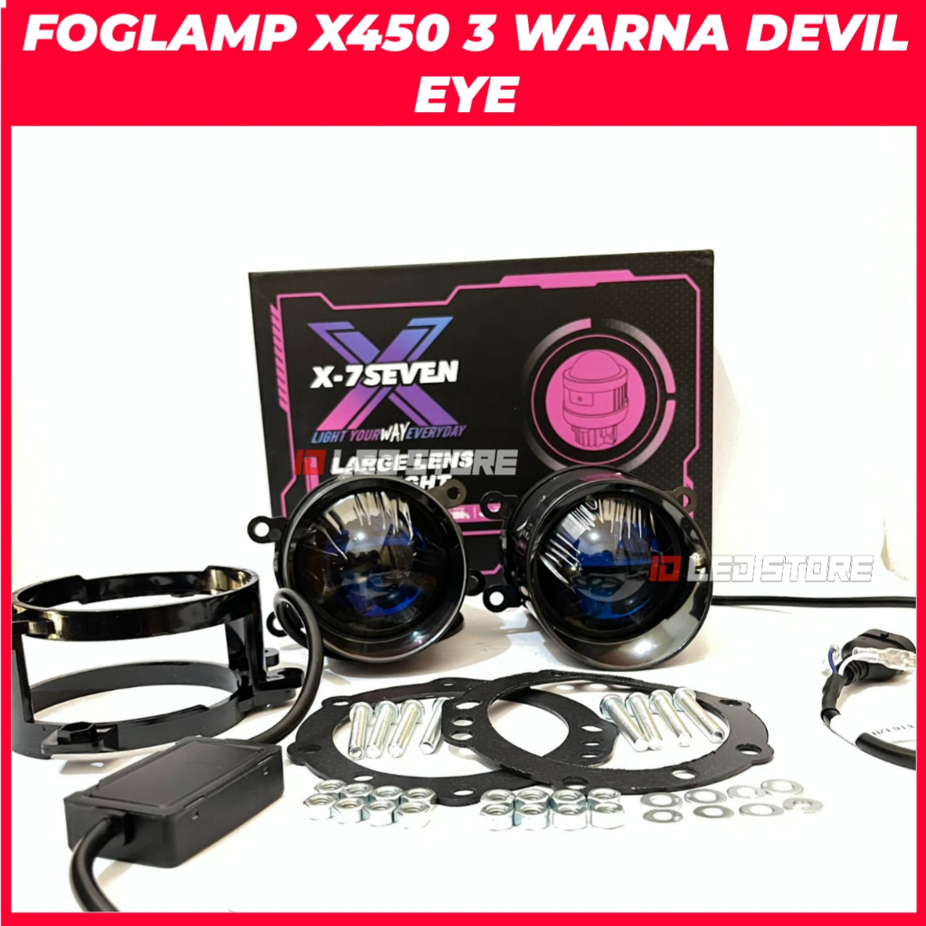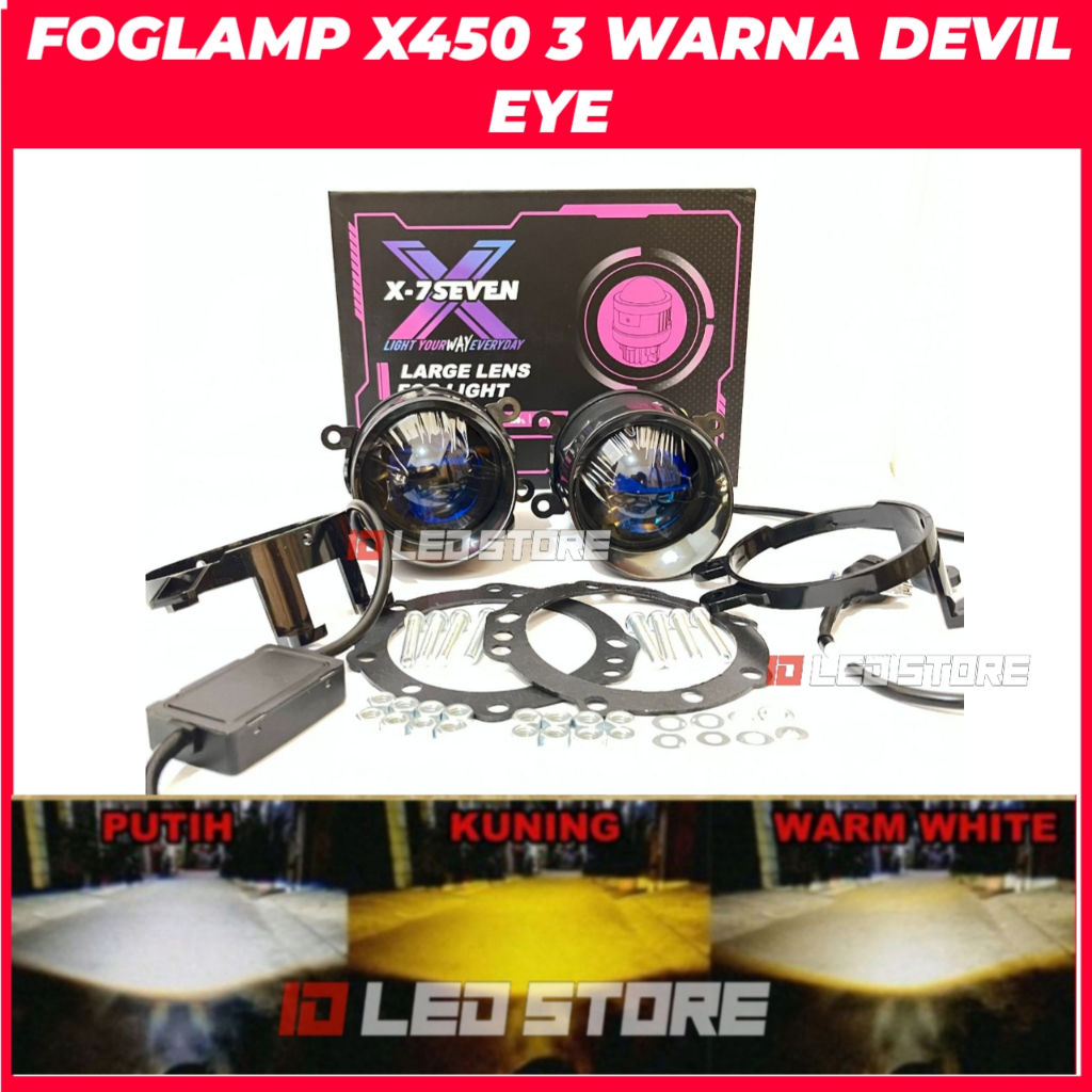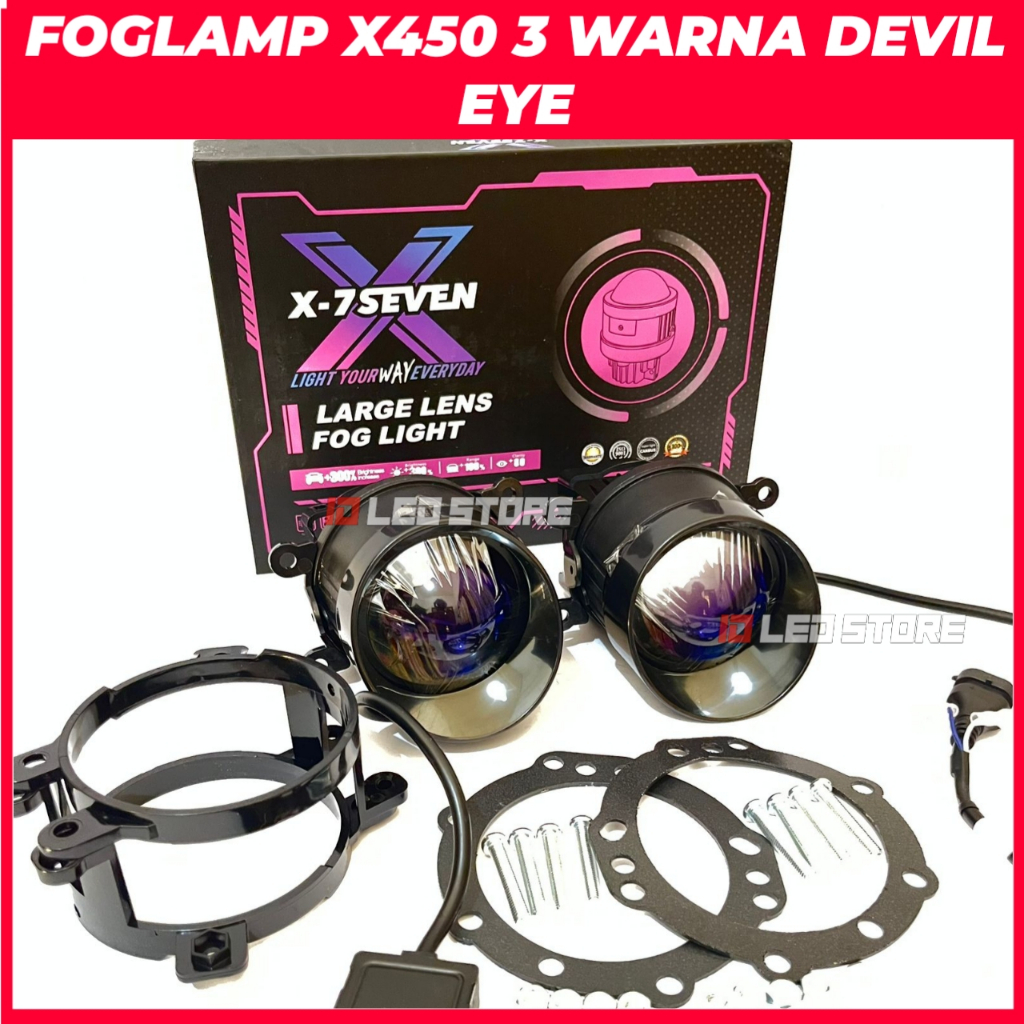 FLASH SALE FOGLAMP X-7SEVEN X400 X450 3 INCH 70 WATT DEVIL EYE 3 WARNA ALL WEATHER BONUS BRACKET RING CNC