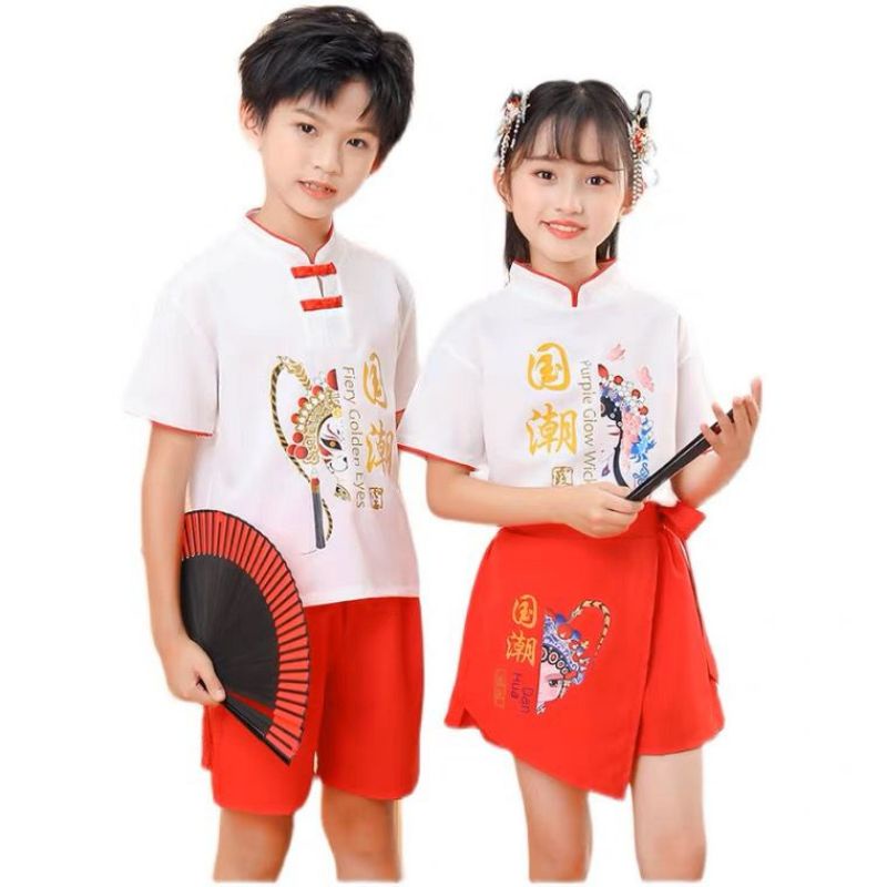 JS14-285 Setelan baju anak couple perempuan dan laki laki model cheongsam 3-12th tradisional