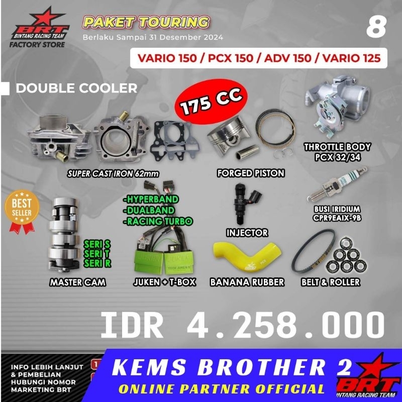 FLASH SALE PAKET BORE UP BRT VARIO 150 PCX 150 ADV 150 CASTING IRON DOUBLE COOLER PISTON 62MM