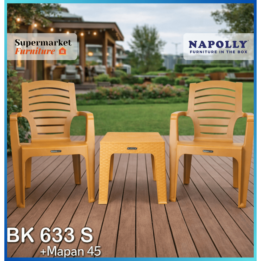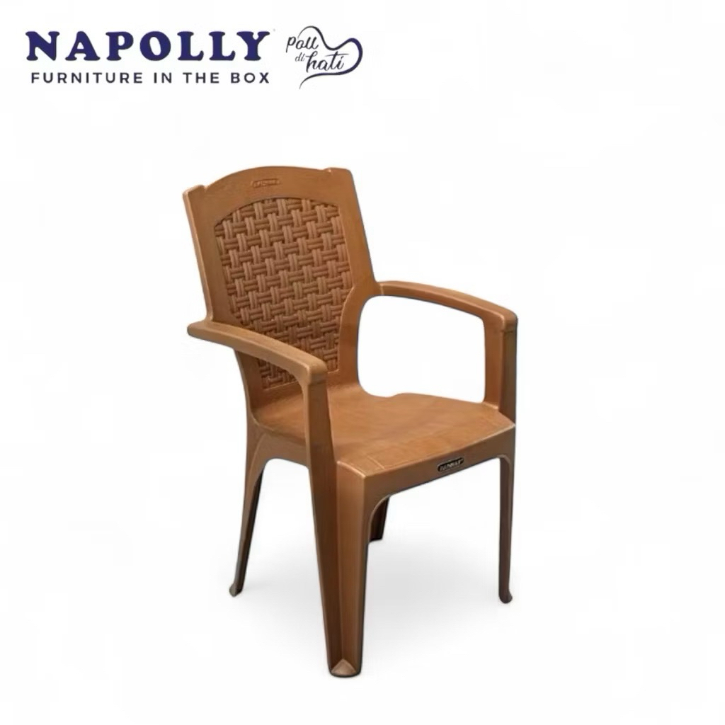BK 632 P - Kursi Plastik Pangeran Napolly / Kursi Senderan Plastik Tangan Anyaman / Bangku Plastik Napolly / Kursi Tamu / Kursi Meja Makan / Kursi Taman