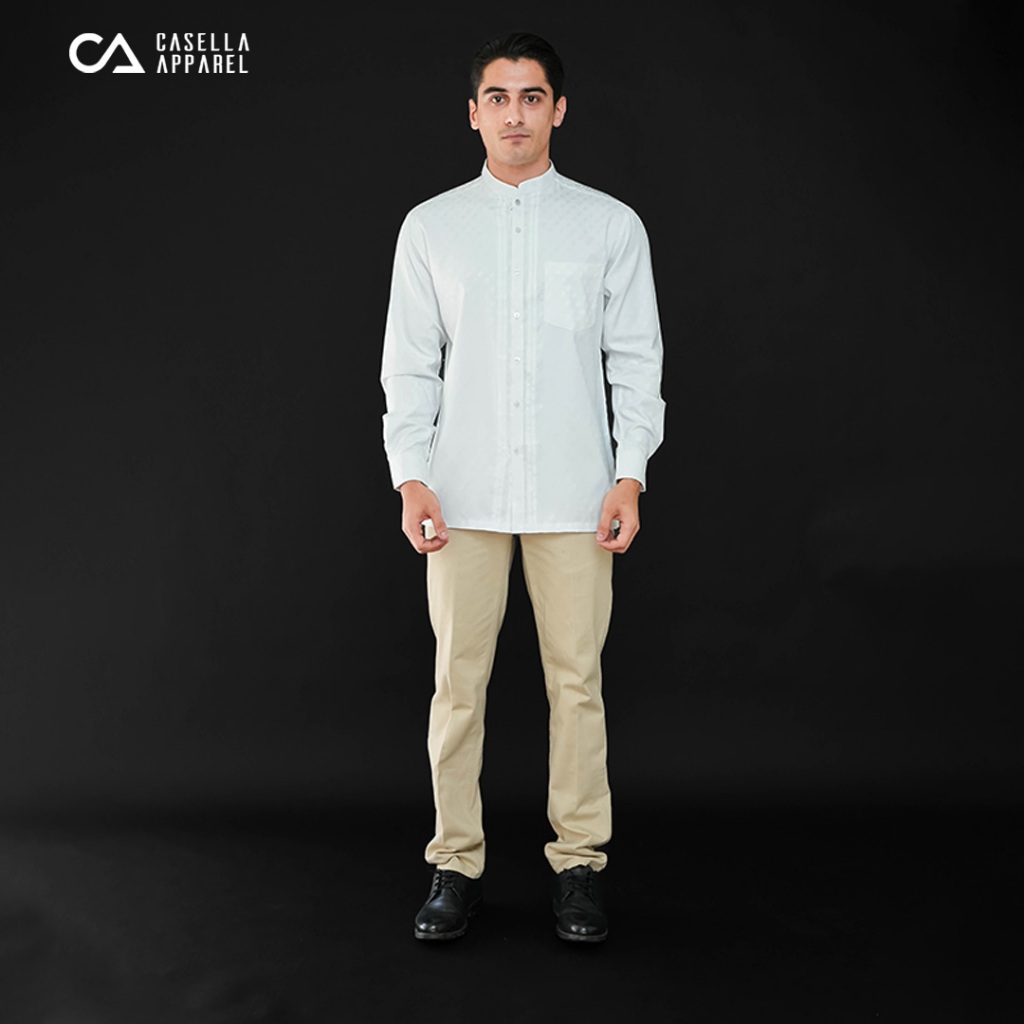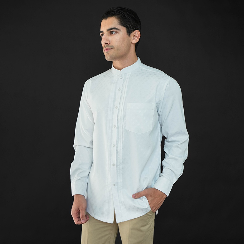 Casella Baju Koko Pria Lengan Panjang Pleats Ilyas | Baju Koko Putih Lengan Panjang 9980 White