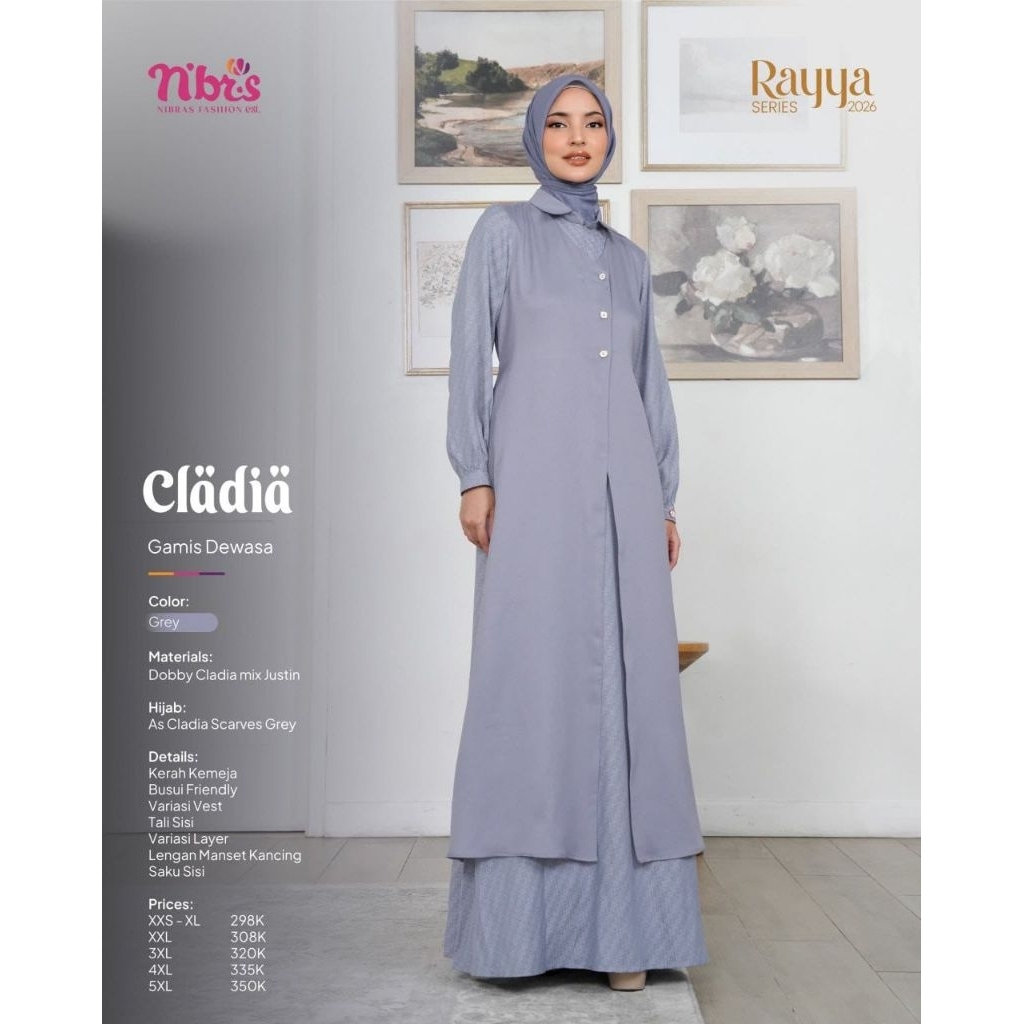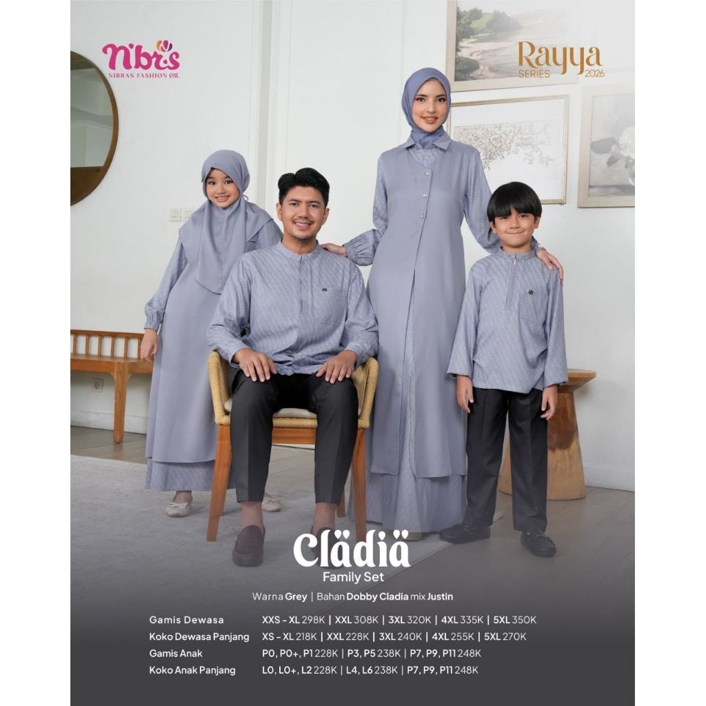 SARIMBIT CLADIA GREY NIBRAS |SERAGAM KELUARGA TERBARU KOKO LENGAN PANJANG