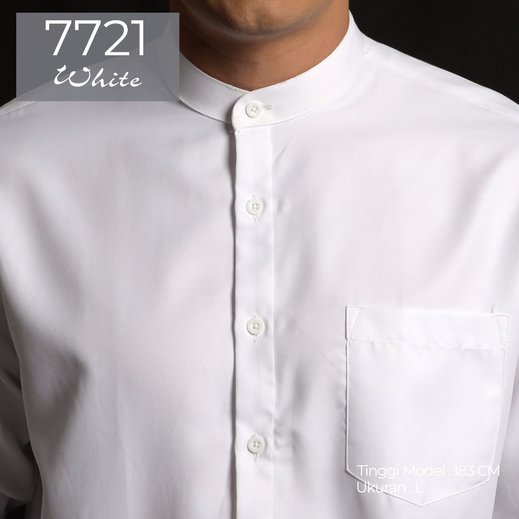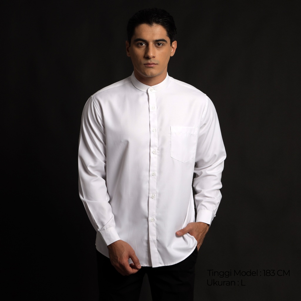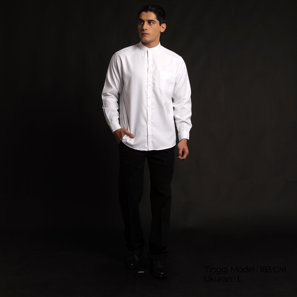 Casella Kemeja Pria Lengan Panjang Kerah Shanghai Putih Polos | Kemeja Koko Solid Basic 7721 White