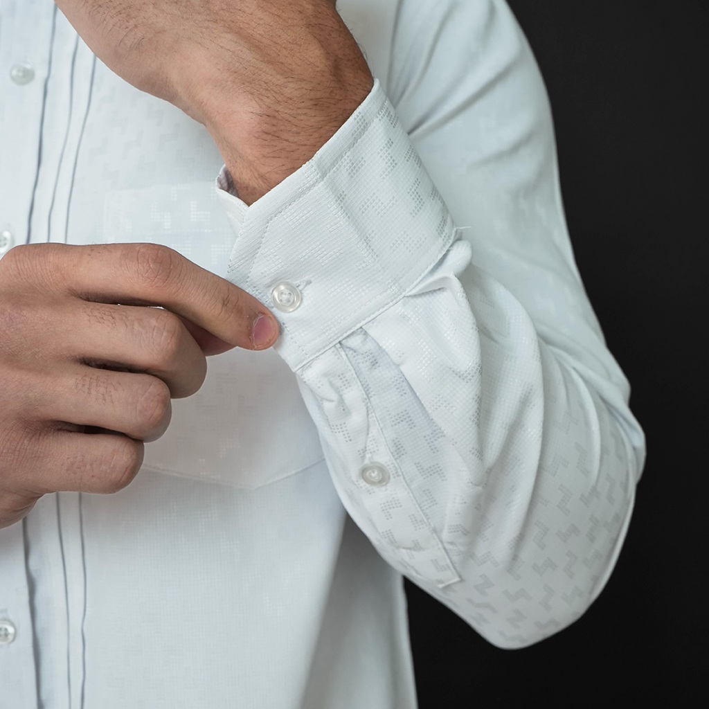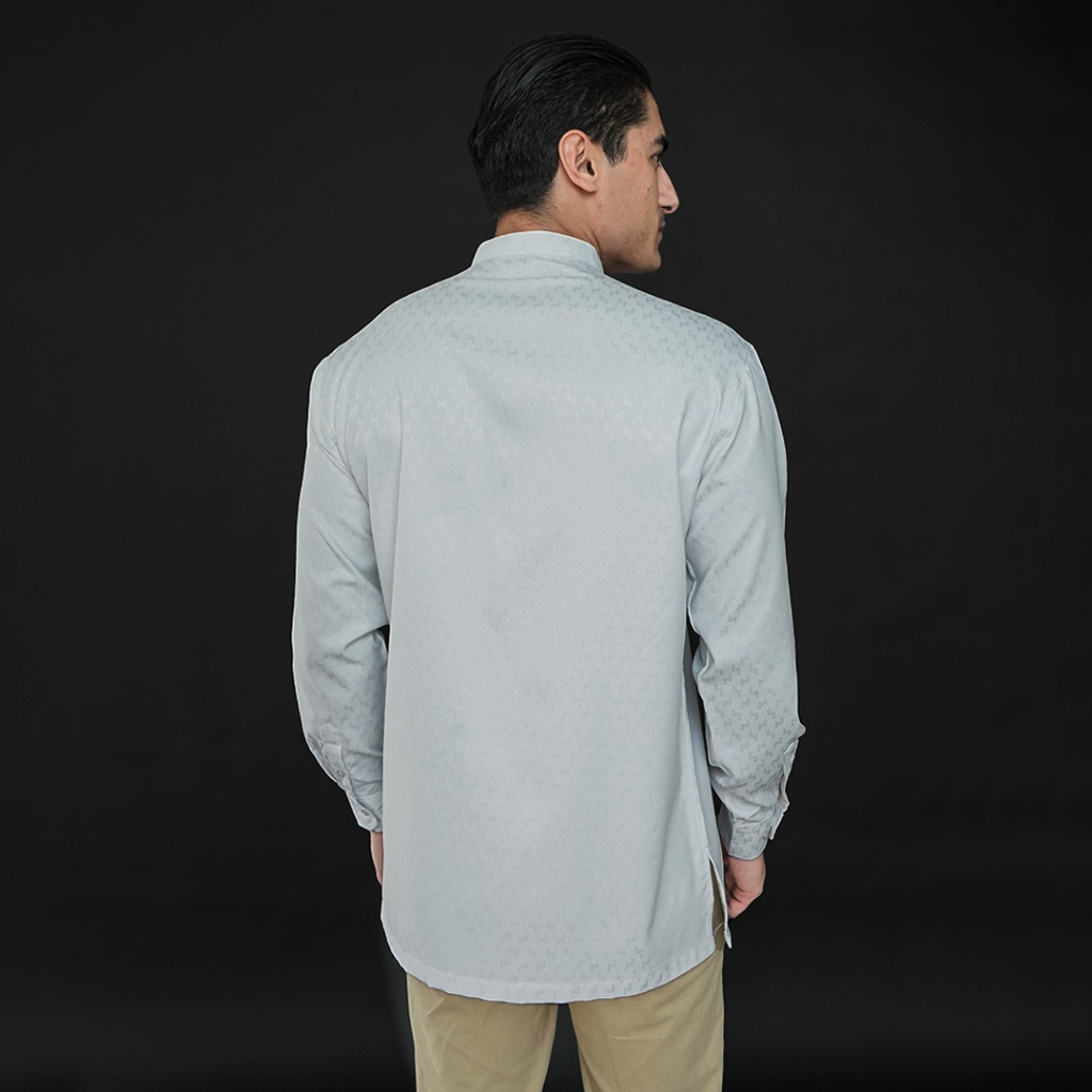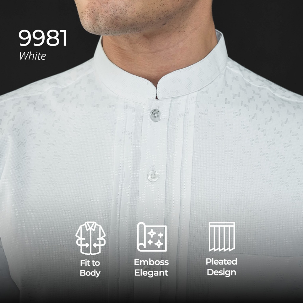 Casella Baju Koko Pria Lengan Panjang Pleats Ilyas | Baju Koko Putih Lengan Panjang
