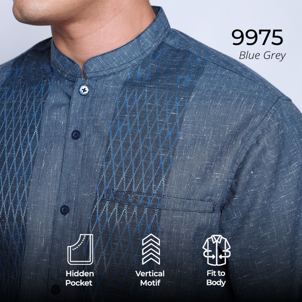 Casella Baju Koko Pria Lengan Panjang Vertical Pattern | Baju Koko Lengan Panjang Khalid 9975 Blue Grey