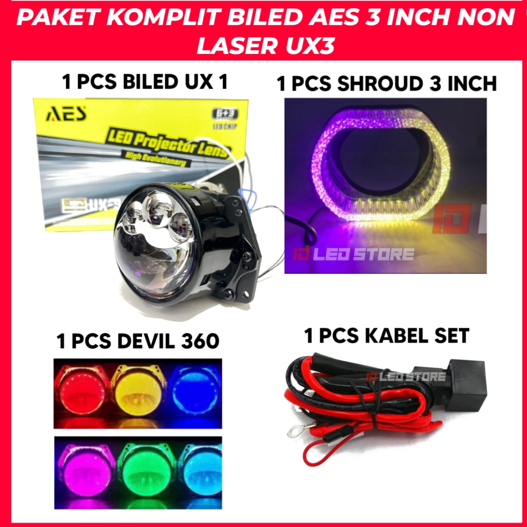 FLASH SALE Paket Komplit Biled AES UX3 80 Watt Size 3 Inch UX 3 Include Shroud + Devil + Relay Set