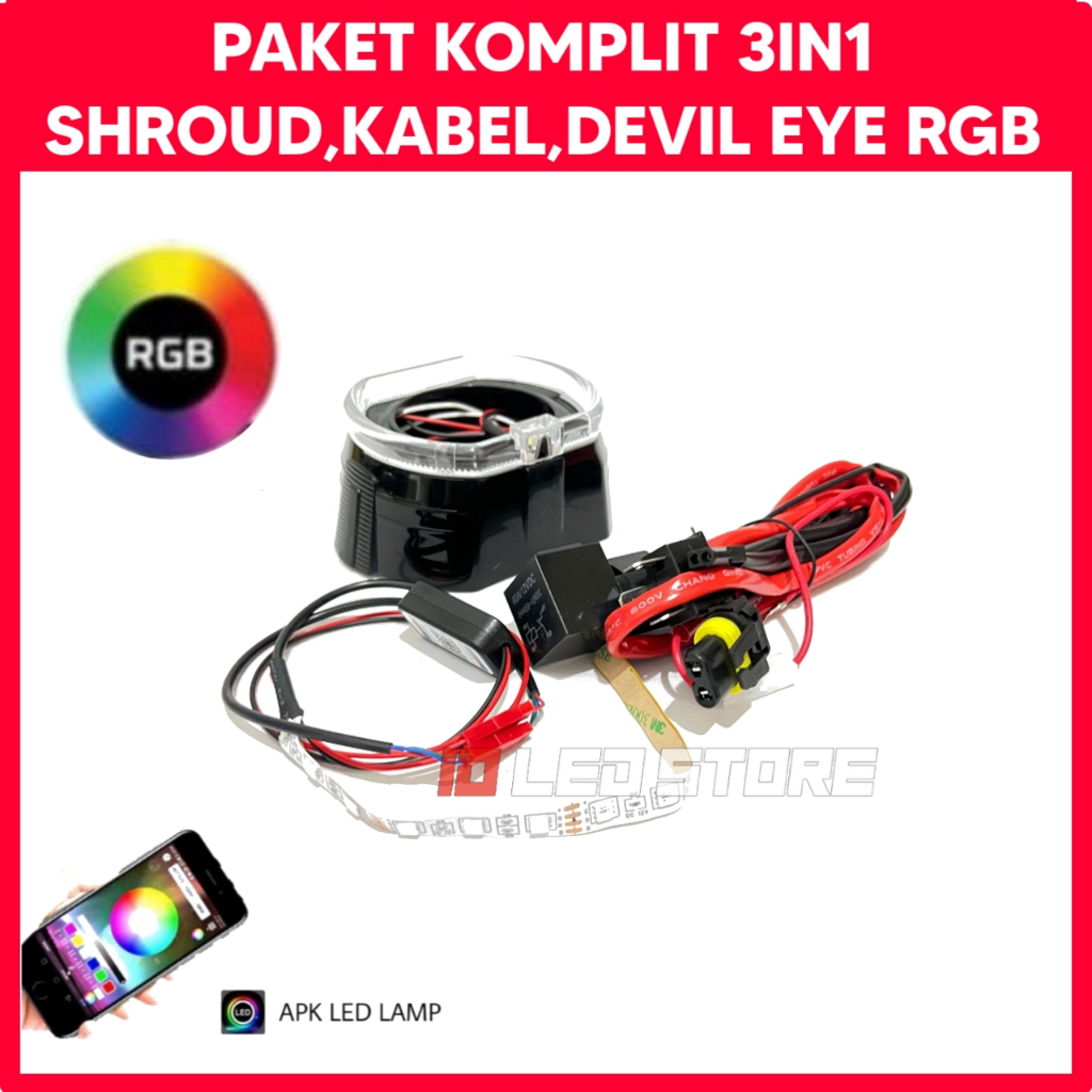 FLASH SALE PREMIUM PAKET HEMAT COMBO MURAH 3IN1 RGB SHROUD BMW KLASIK BLACK HOUSING 2.5 INCH KABEL SUPER RELAY SET BILED