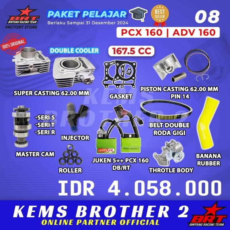 FLASH SALE PAKET BORE UP BRT PCX 160 ADV 160 PISTON 62 1675 CC ORIGINAL BRT ( blok piston kit noken as injektor ECU JUKEN 5+ TB velo VANBELT roller)