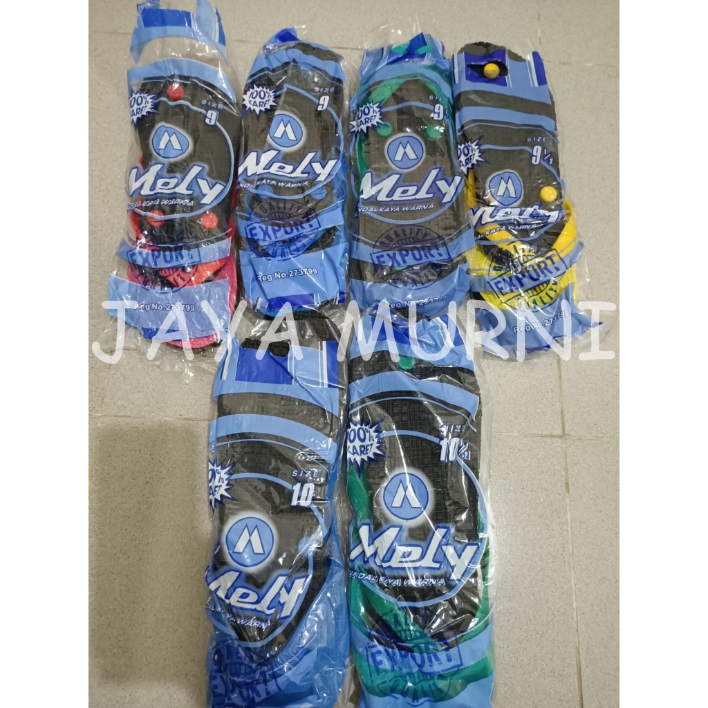 Sandal Jepit Mely Seri Isi 6 Pasang (1 Pak) Ukuran 9-10,5 Warna Warni