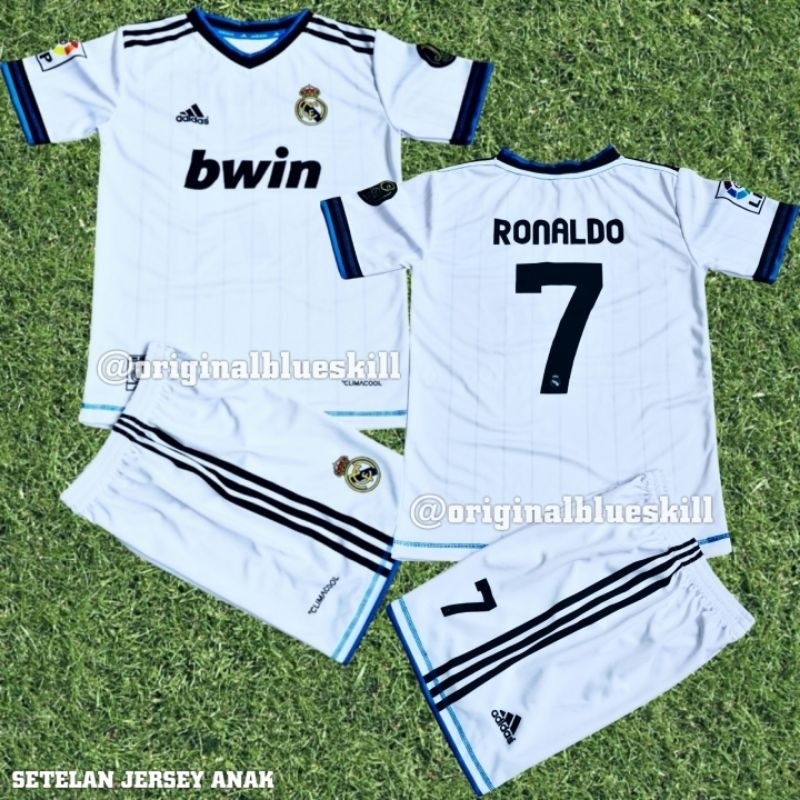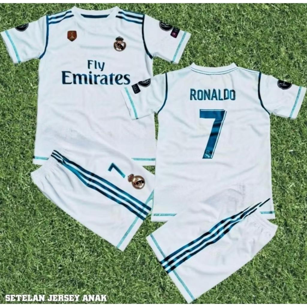 Setelan jersey anak realmadrid home 2017-18 / setelan baju bola anak / pakaian olahraga anak / jersey sepak bola anak / setelan jersey anak ronaldo