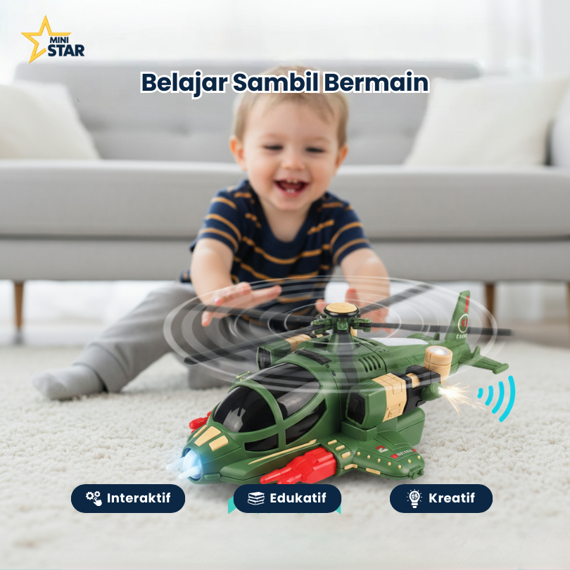 Mainan Anak Pesawat Helikopter Tempur Berputar 360° Dengan Audio Led Dan Sayap Terbuka