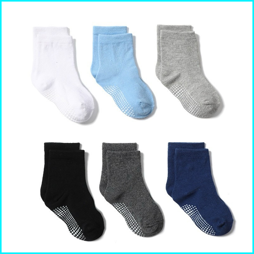 6pasang Kaos Kaki Anak Antislip Model Panjang Polos Dan Panjang Strip
