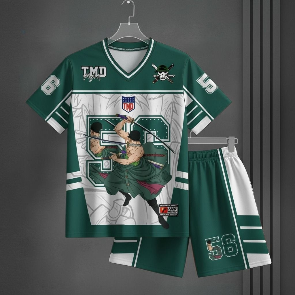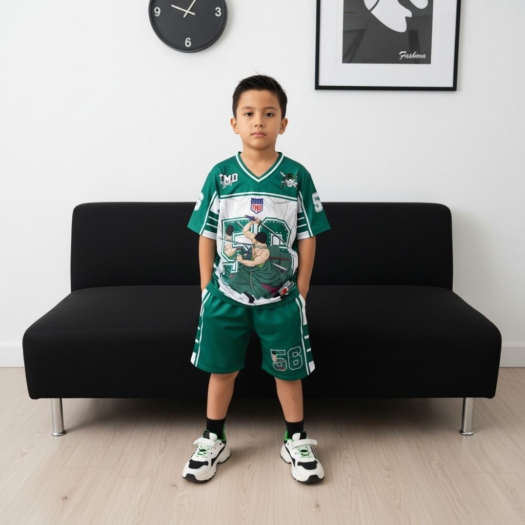 Setelan Jersey Anak Zoro Onepiece Usia 3-10 Tahun Baju Jersey Dryfit Laki laki Vintage Motif Karakter Full Printing