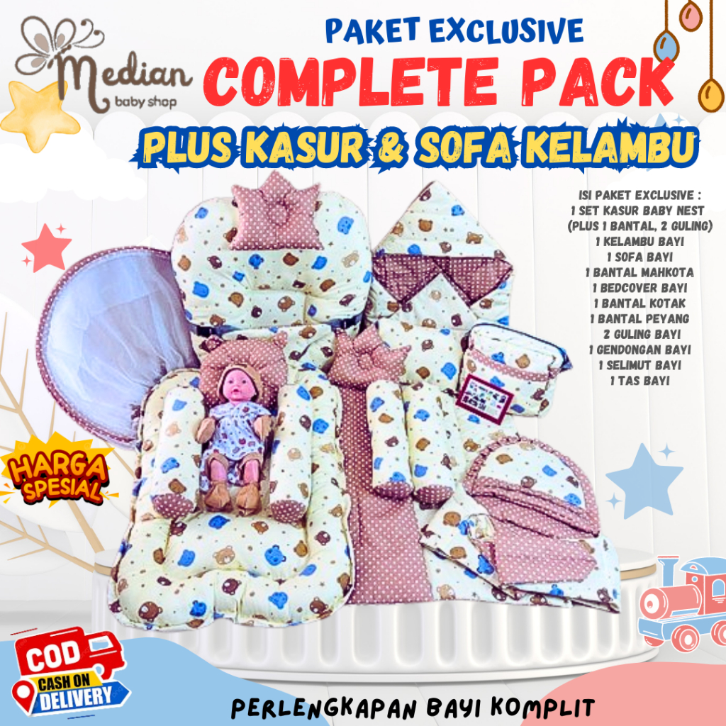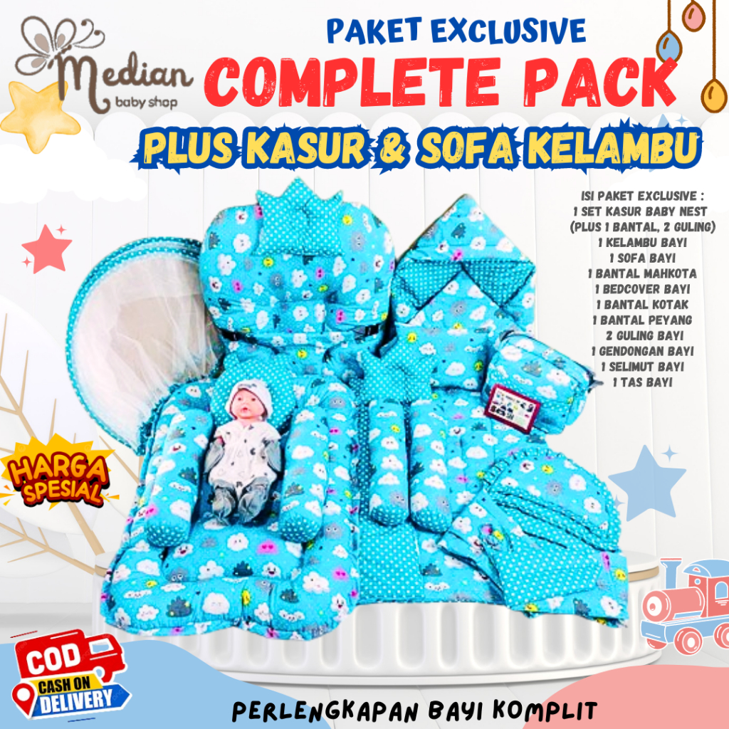 Paket COMPLETE!! Perlengkapan Bayi Baru Lahir-Kasur Kelambu+Sofa bayi+Bedcover+Selimut+Gendongan+Tas