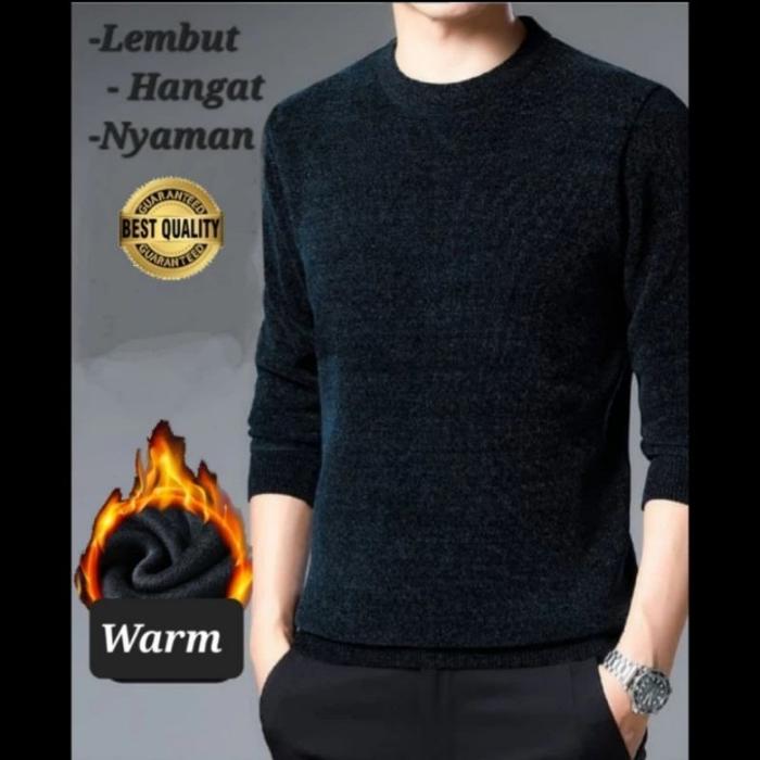 BAJU LONG JOHN PRIA SWEATER PRIA WINTER THERMAL MUSIM DINGIN NYAMAN - HITAM, 4XL