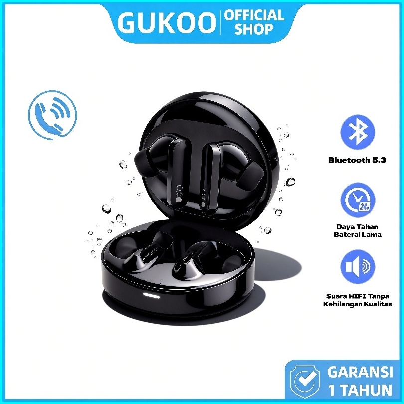 Gukoo Tws Earphone Desain Bulat Minimalis - Bluetooth 5.4 Baterai Super Awet Suara Surround Telpon Jernih Cvc