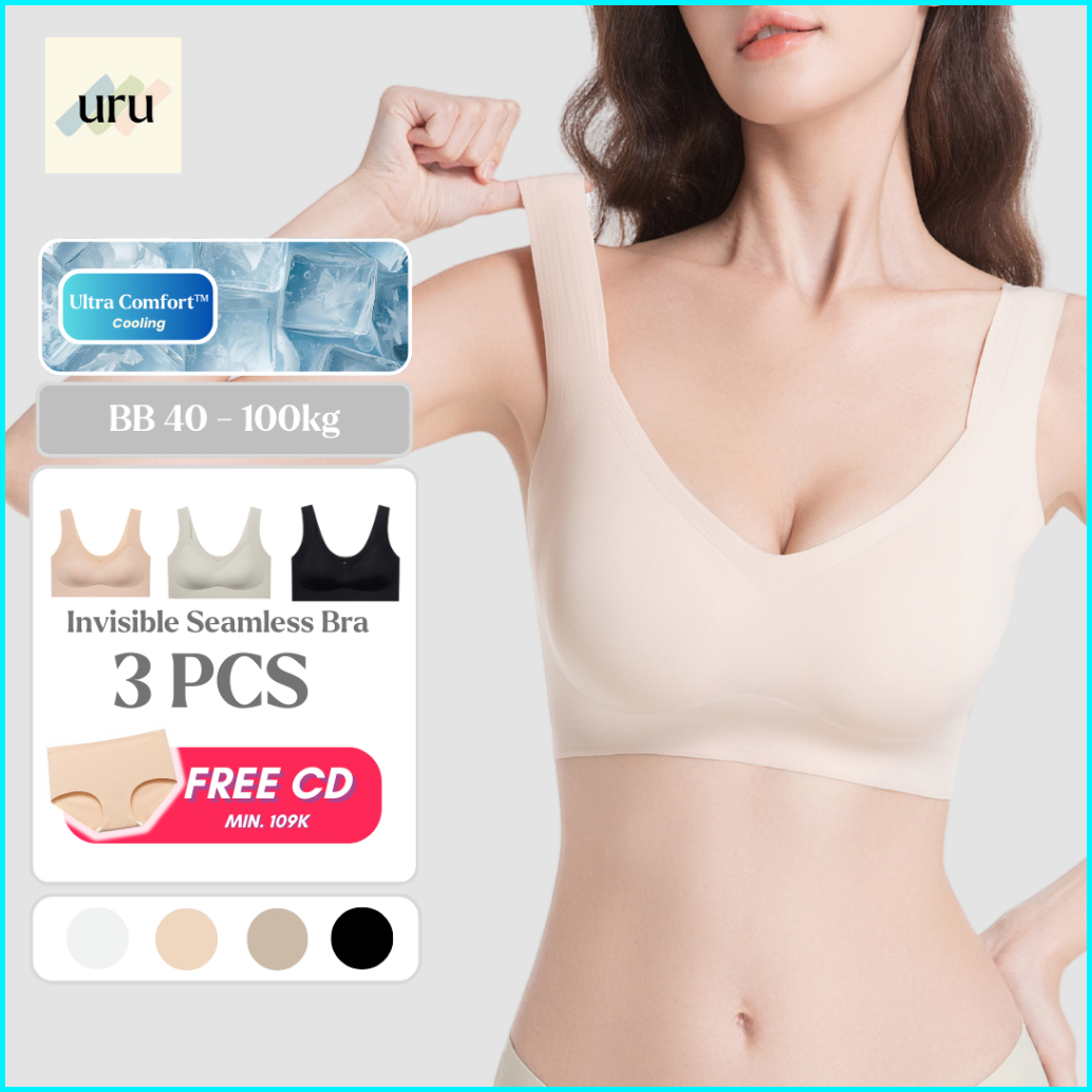 Uru 3pcs Invisible Seamless Bra Tanpa Kawat Dalaman Wanita Bh Beha Cup A B C D Jumbo Sport Lebar