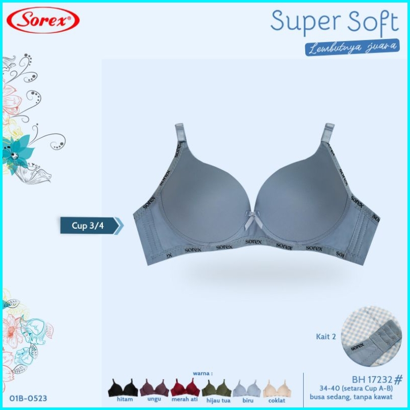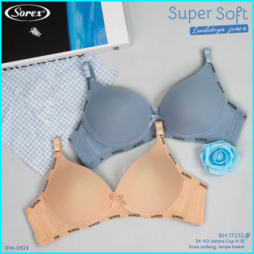 Grosir 3 Pcs Bra Bh Sorex 17232 Cup Sedang Setara A-b Busa Tipis Kait 2 Tanpa Kawat