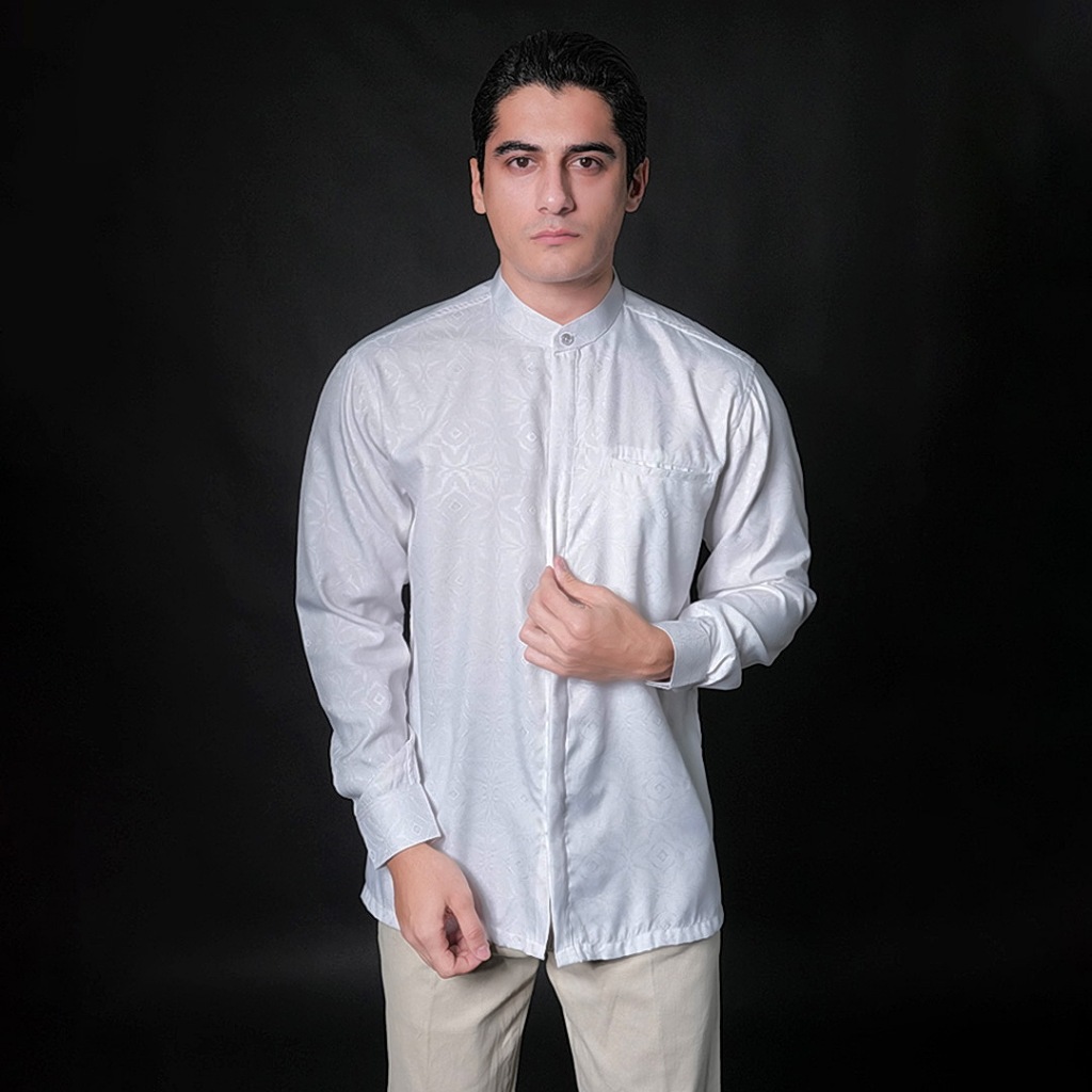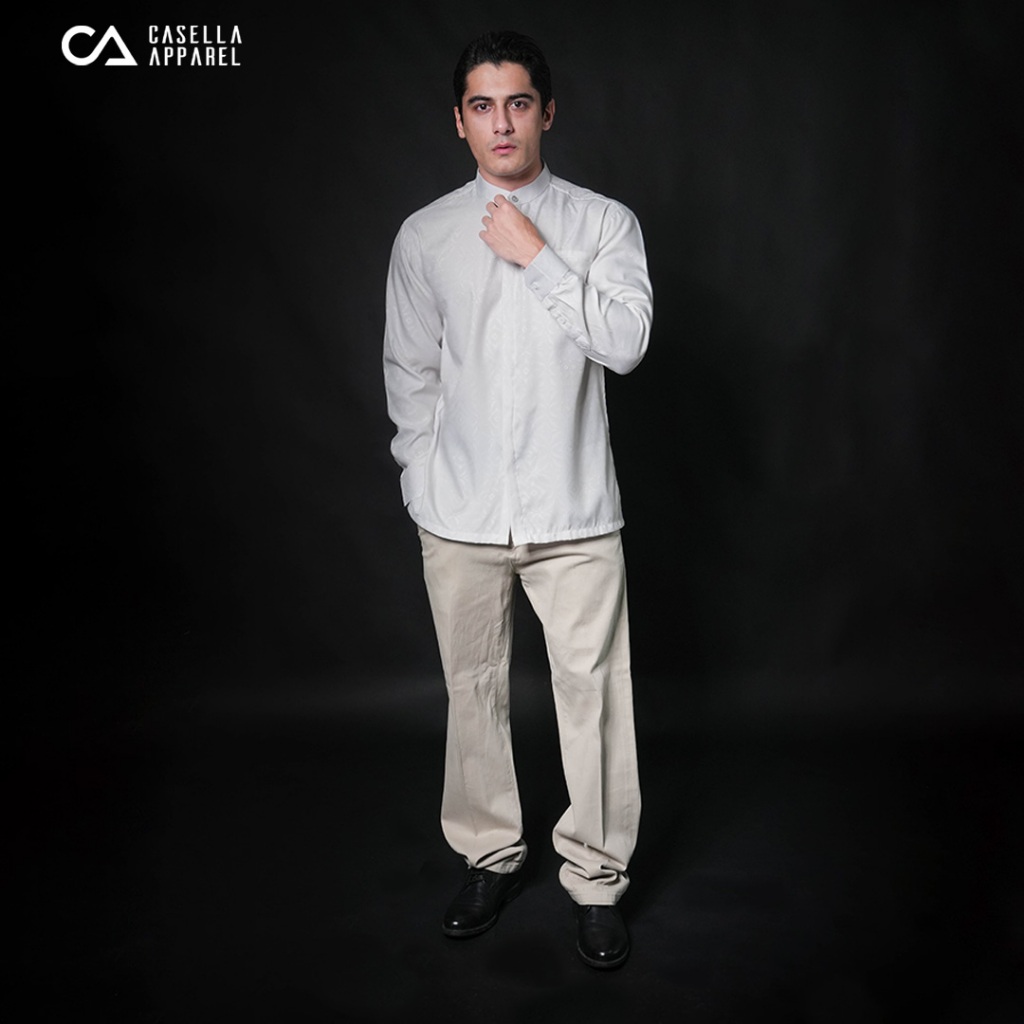 Casella Baju Koko Pria Lengan Panjang Motif Elegan | Baju Koko Yusuf 9996 White