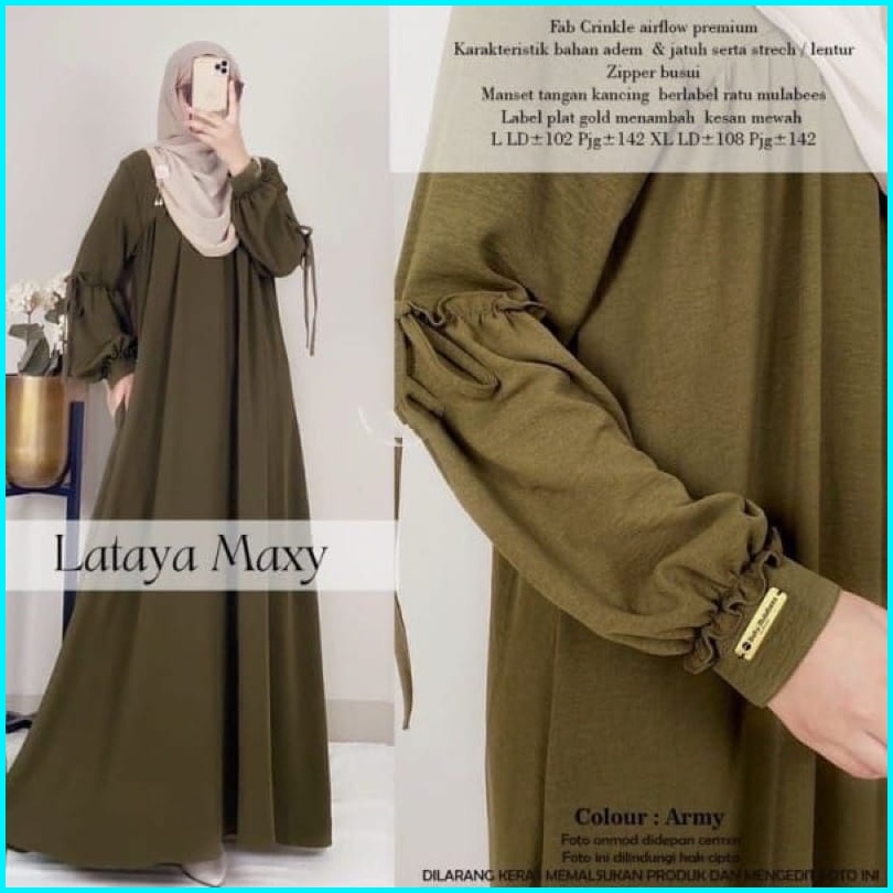 Dizzah Gamisku Dress Lataya Maxy Cringkle Airflow Gamis Polos Bahan Kringkle Premium Ld 110- 120 Gamis Wanita Busui Frie