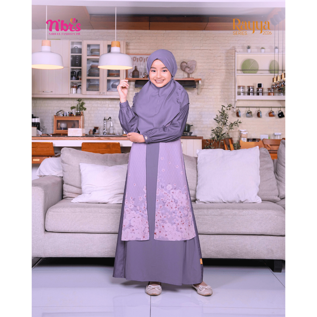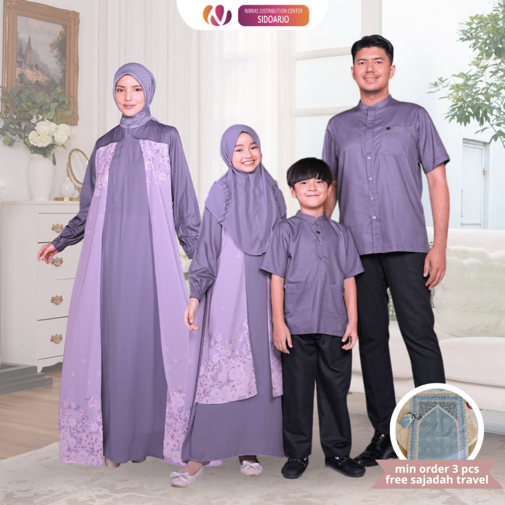 Baju Couple Lebaran 2026 IBU AYAH Gamis & Koko Anak Premium Nibras Izadia Lavender & Izadia Mauve