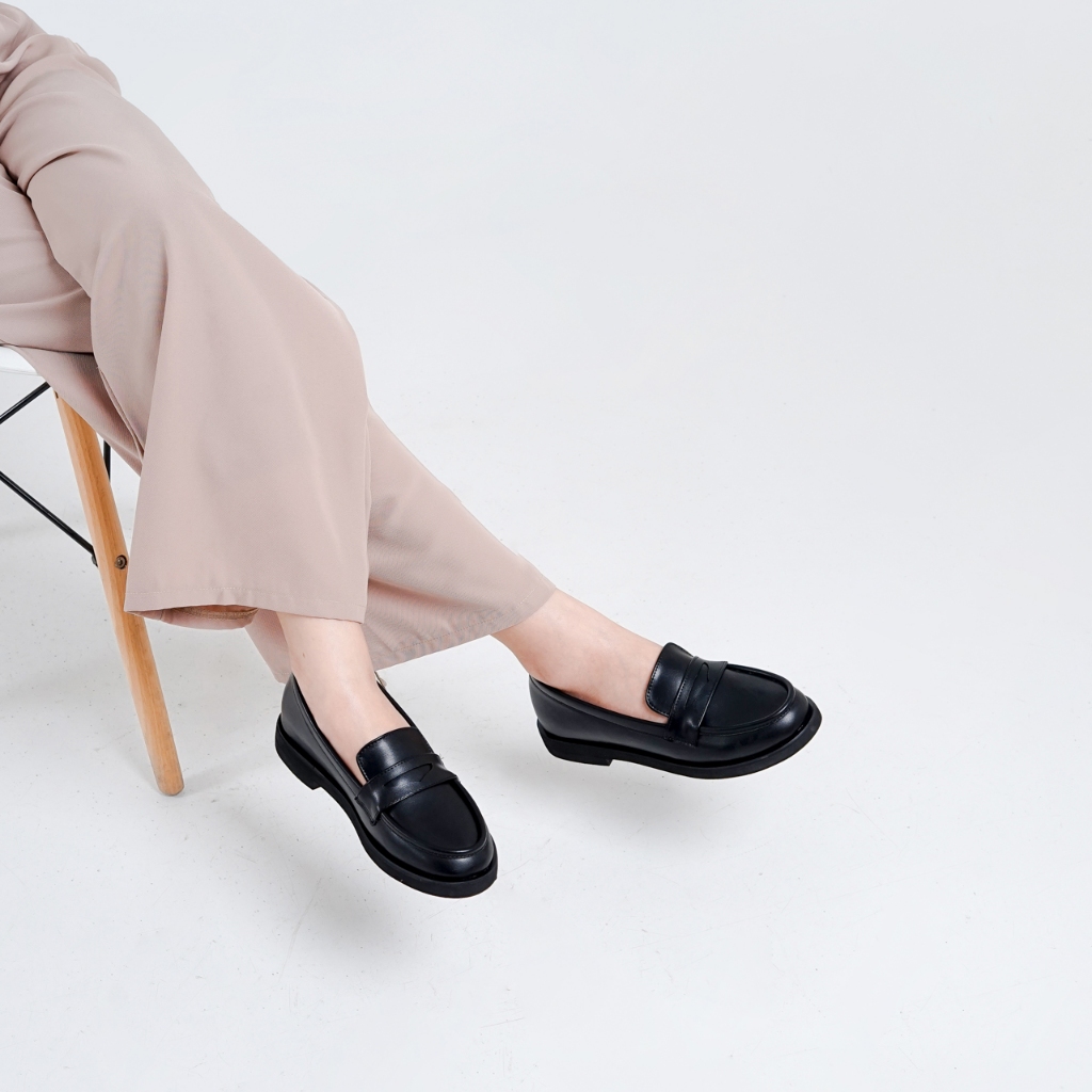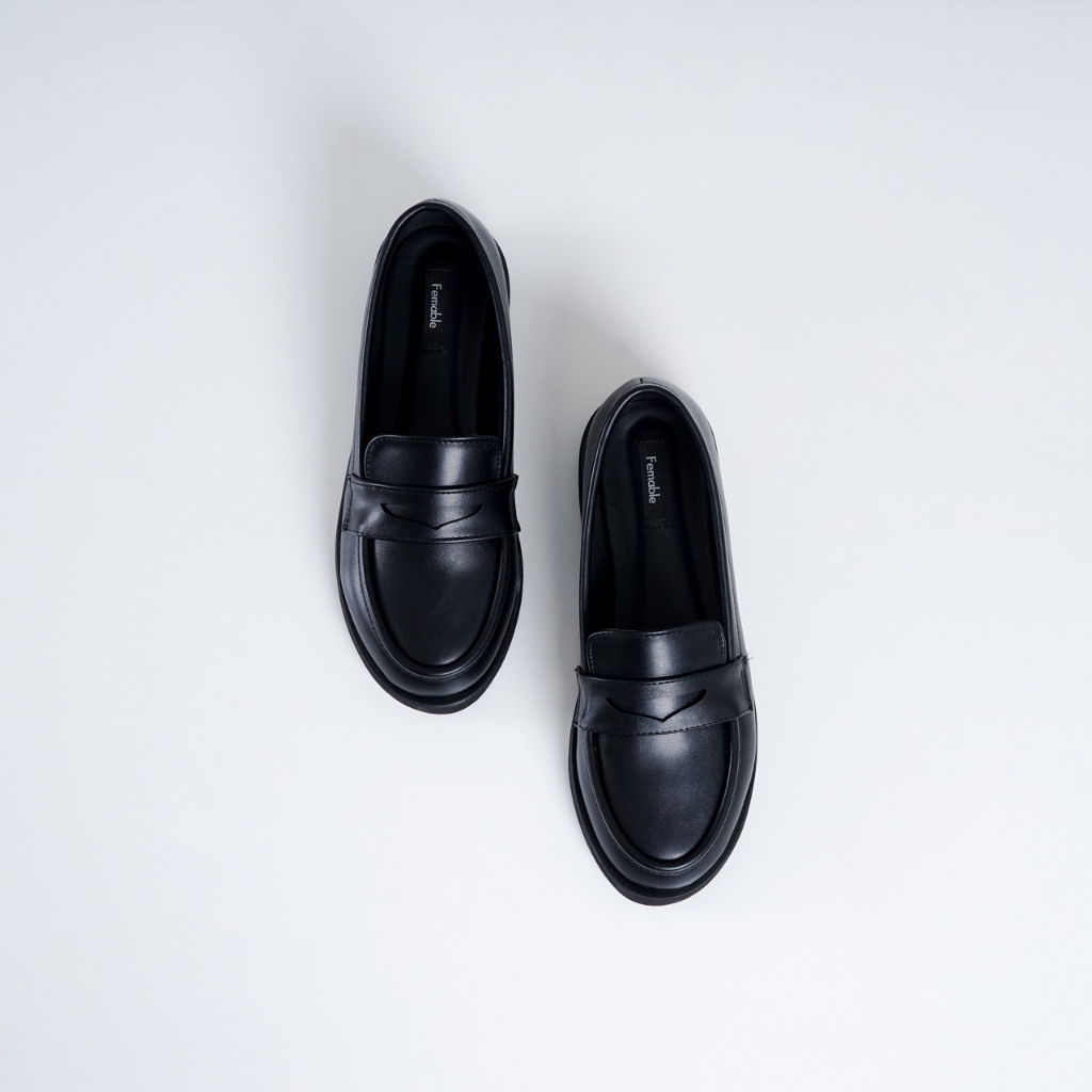 Femable Sepatu Kasual Wanita Loafer Og Black Karet Sintetis