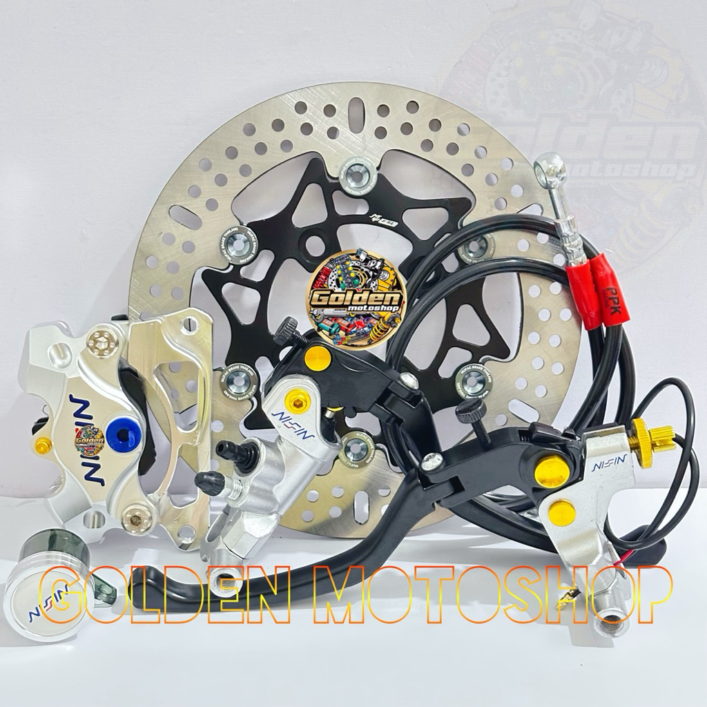 Paket Pengereman lengkap Nisn Master rem Kaliper 2piston Disc cakram lubang 4 Jupiter MX/Z new ,Vega ZR/RR ,Mio Smile /S
