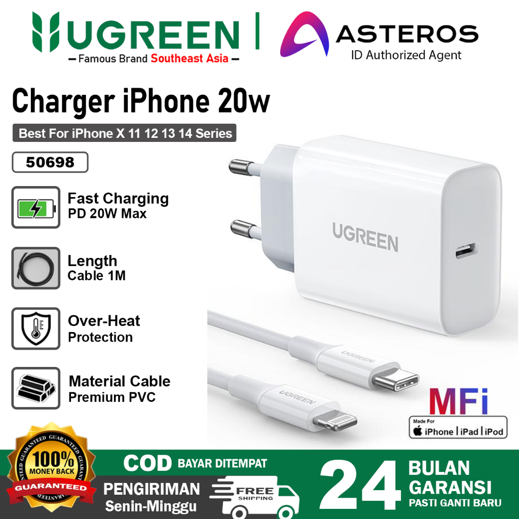 UGREEN Charger iPhone Lightning MFI PD Type C Fast Charging 20w