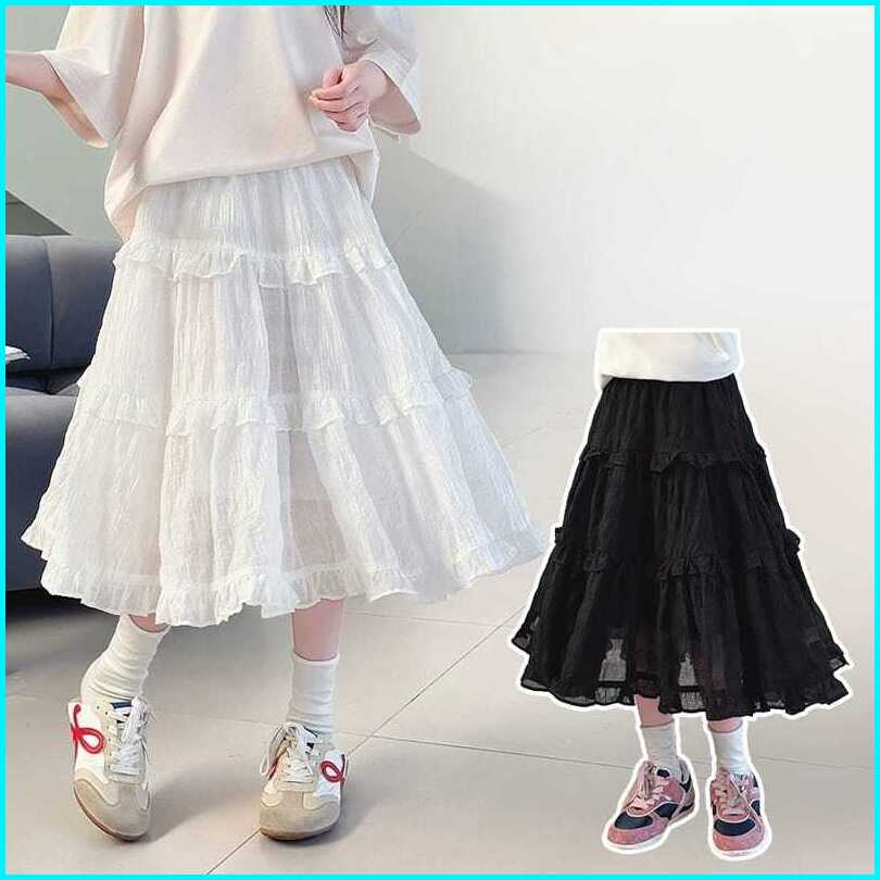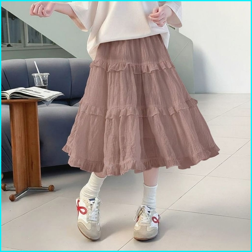 Rok Anak Perempuan Aksen Susun 3 Bahan Polo Linen Untuk Usia 3-12th Skirt Kids Ruffle A-line Korean Style Rok Anak Korea