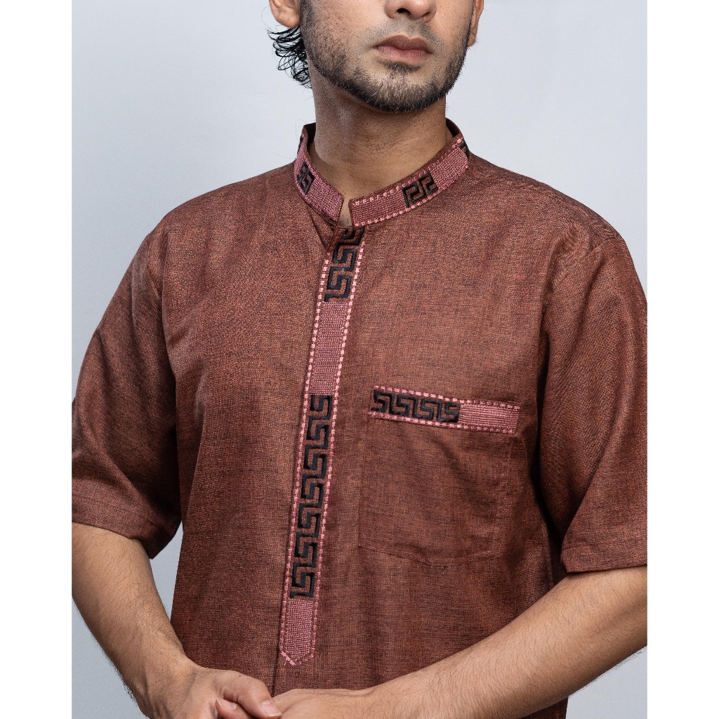 Baju Koko Pria Dewasa Motif Bordir Lengan Panjang Bahan Katun Madinah Premium Muslim Nyaman Motif