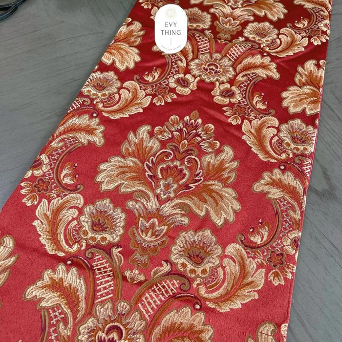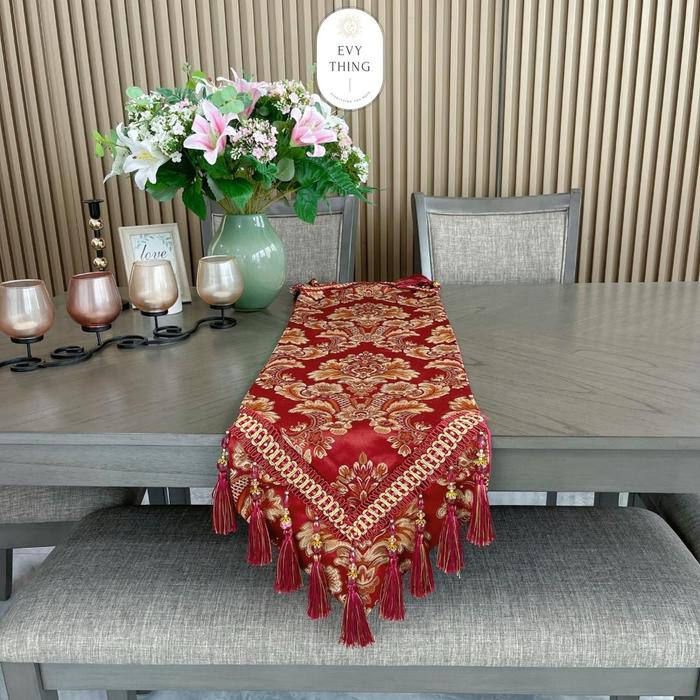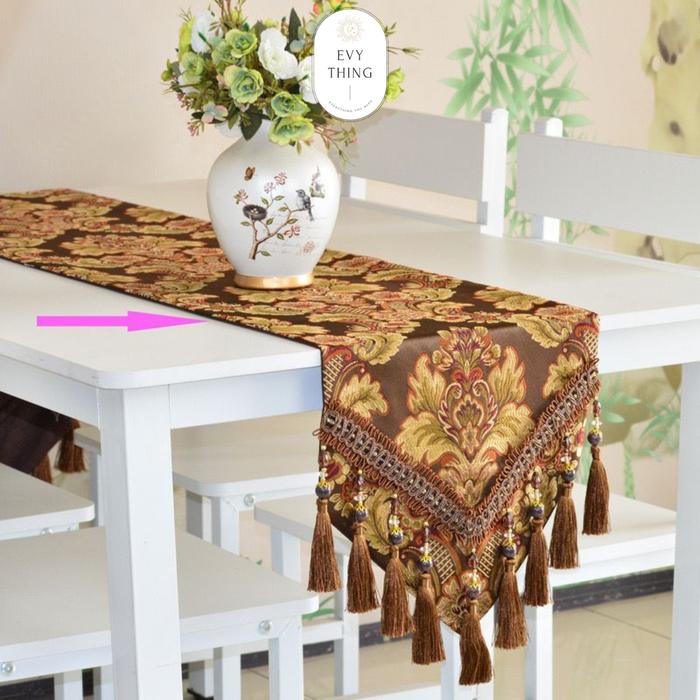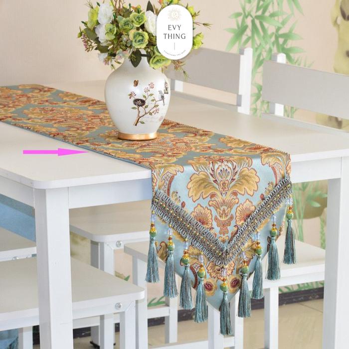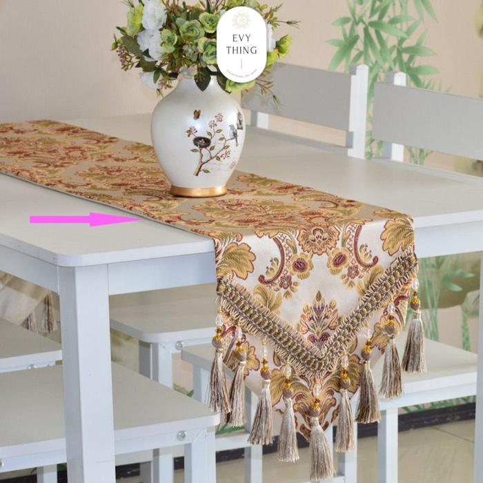 EVYTHING TAPLAK MEJA TAMU PANJANG TAPLAK MEJA TENGAH TABLE RUNNER DESAIN EROPA MEWAH IMPORT - CREAM, 34X150CM
