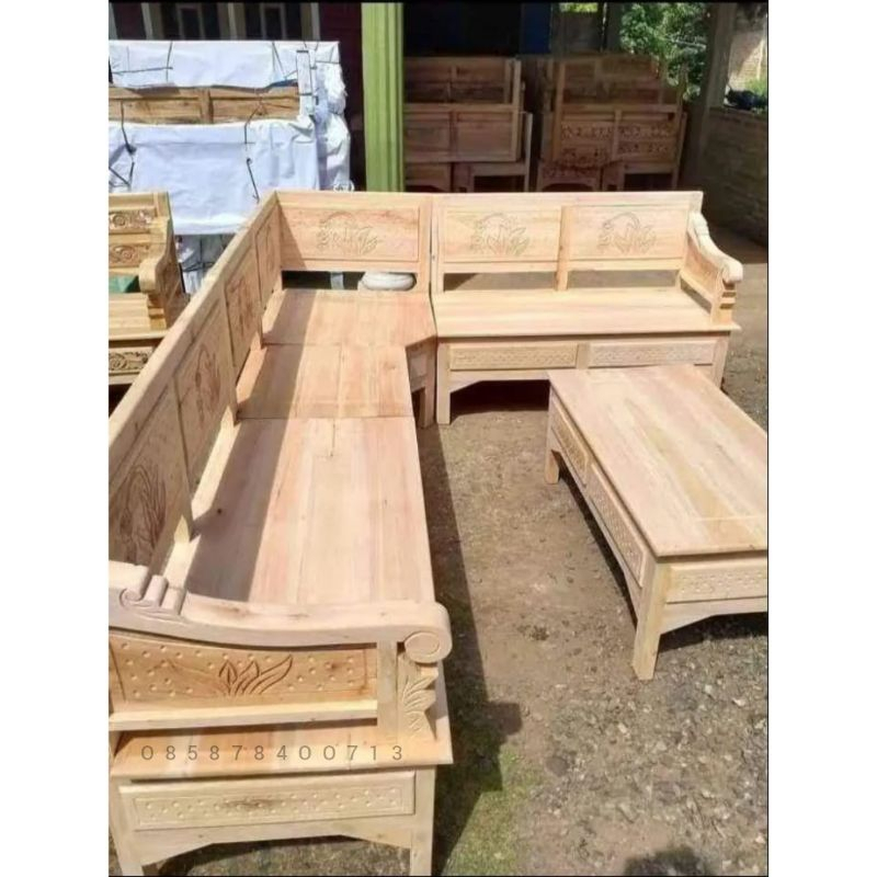 Ready Stock KURSI TAMU | KURSI SUDUT MINIMALIS KAYU MAHONI MENTAHAN BERKUALITAS