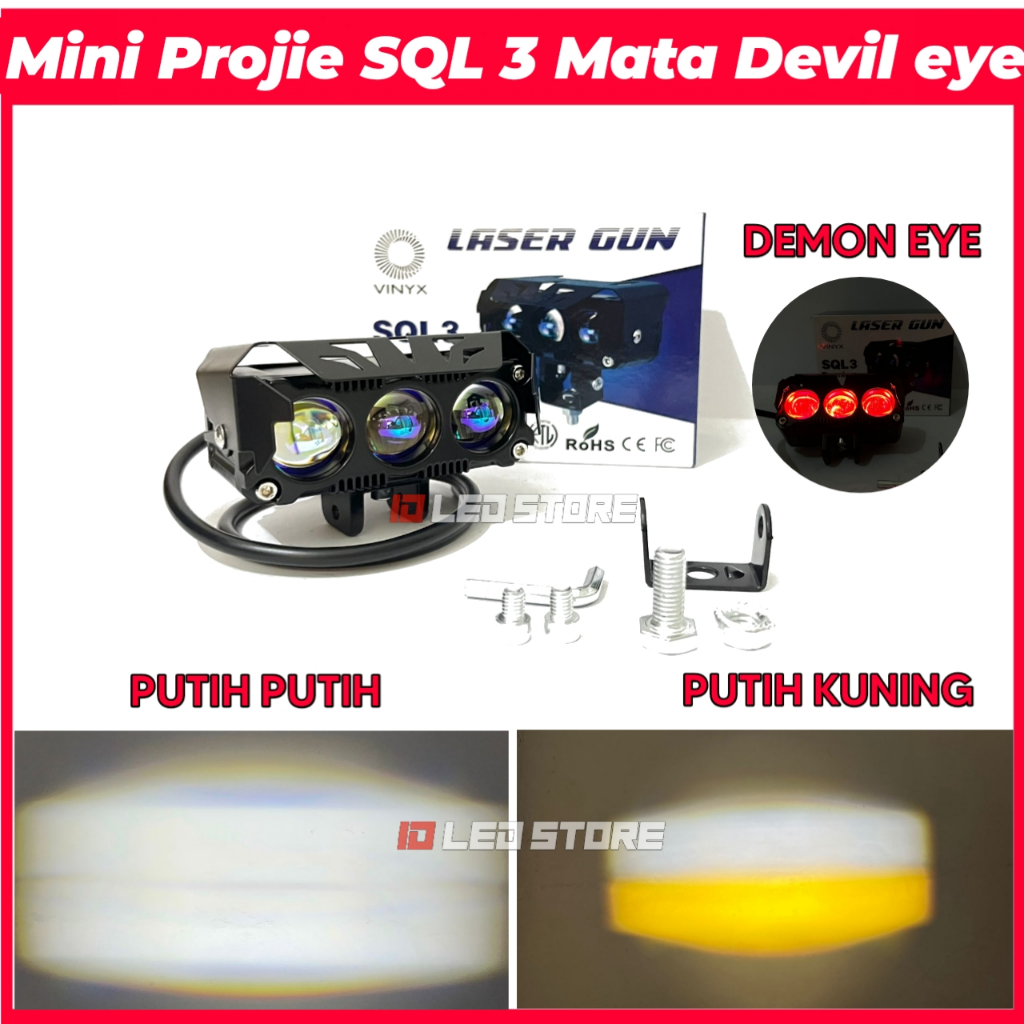 FLASH SALE Lampu Tembak Sql 3 Mata Vinyx Devil Eye D2 Putih Kuning Putih Putih Plus Kipas Pendingin
