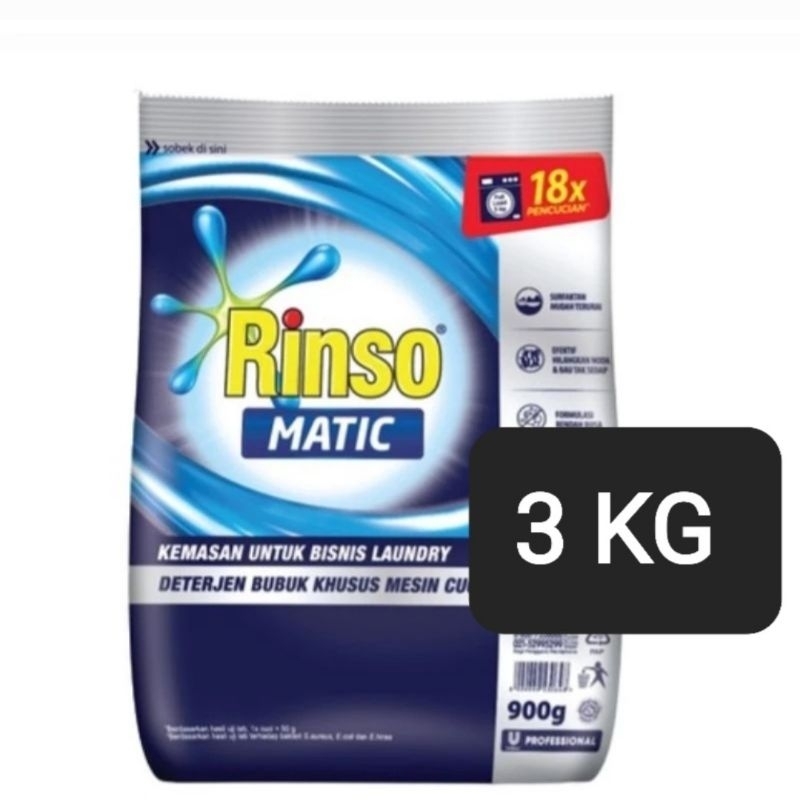 Rinso Matic Bubuk 3 Kg.Rinso Profesional Matic Bubuk/Rinso Detergen Bubuk Untuk Bukaan Atas& Depan