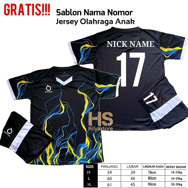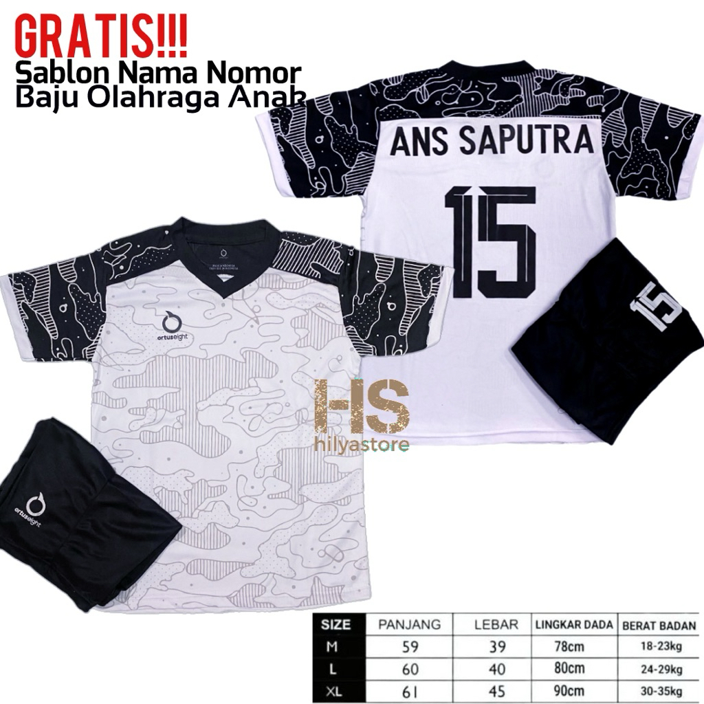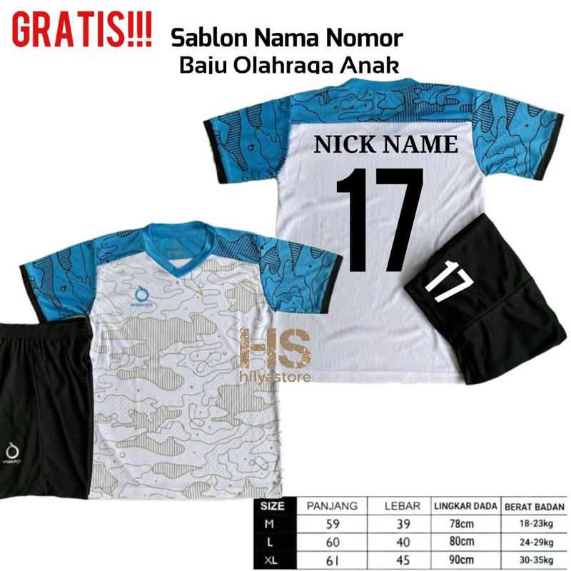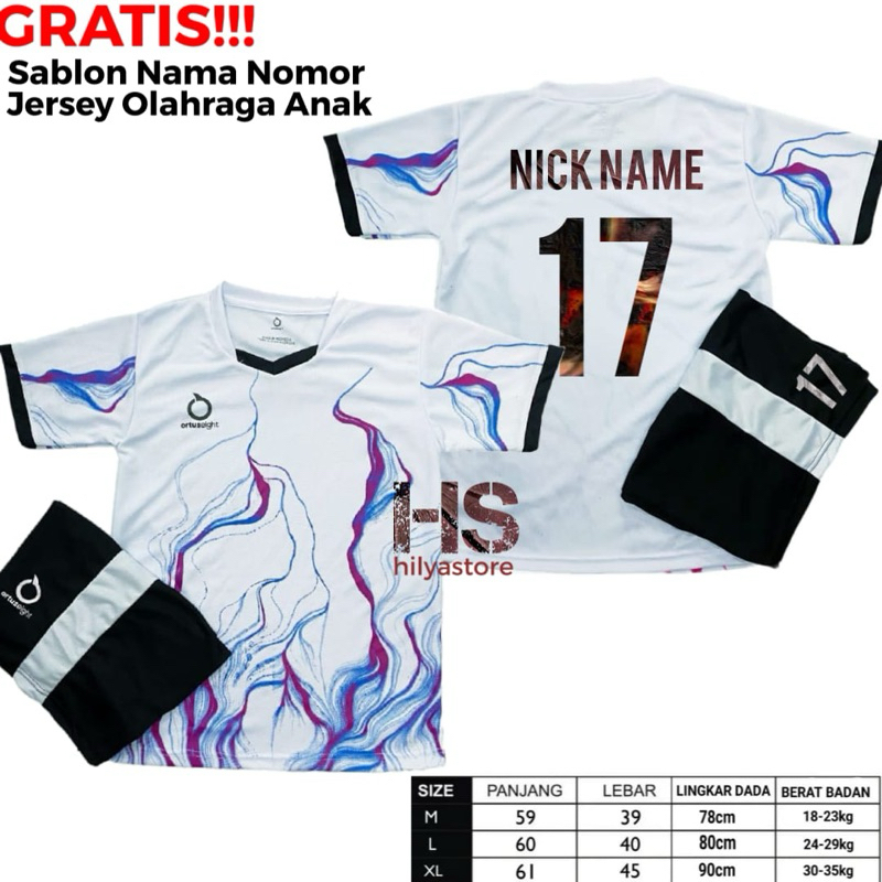 Free Custom Sablon Nama Nomor Setelan Jersey Bola Anak Usia 5-13Th Baju Bola Anak Laka - Laki Perempuan Futsal Badminton Sepak Bola SSB Junior
