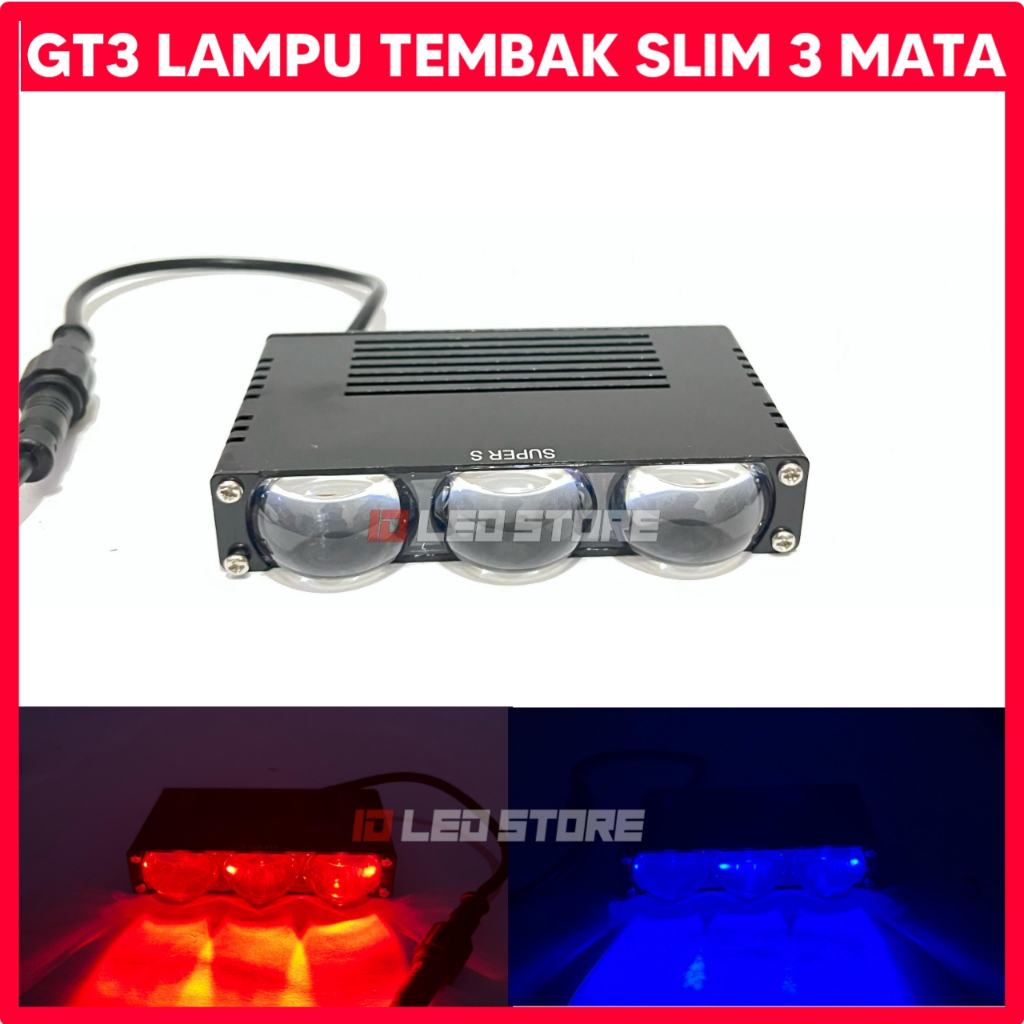 FLASH SALE LAMPU TEMBAK LED 3 MATA SLIM GEPENG GT3 PUTIH KUNING DEVIL EYE EXTRA FAN COOLER