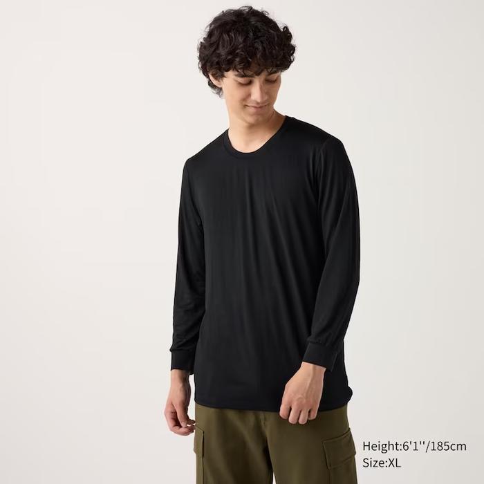 MEN HEATTECH T-SHIRT CREW NECK PANJANG LONGJOHN PRIA JASTIP UNIQLO - WHITE, XS
