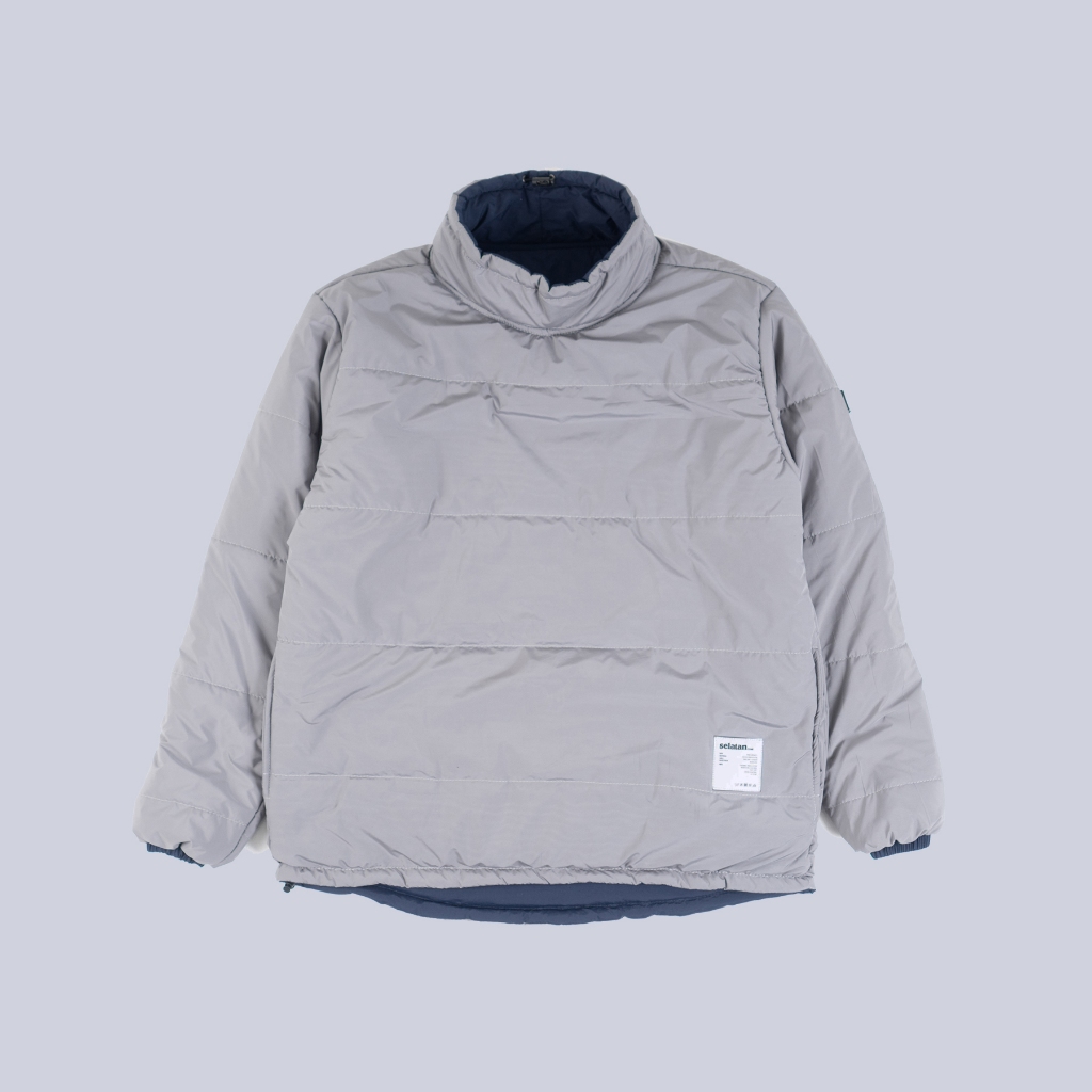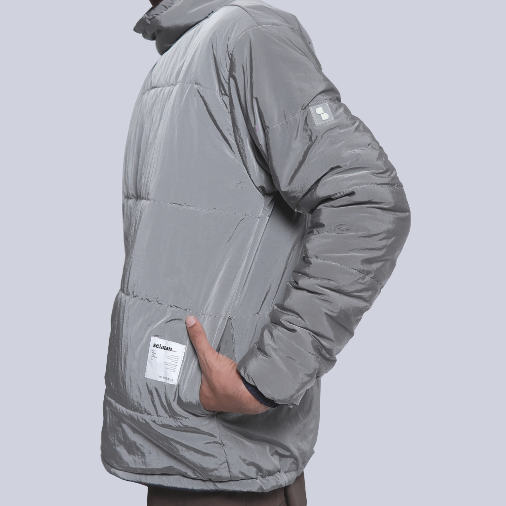 SELATANcoat. Jacket Parasut Casual Turtleneck Reflective Stripe Nylon Reversible Twotone Color Navy-Gray