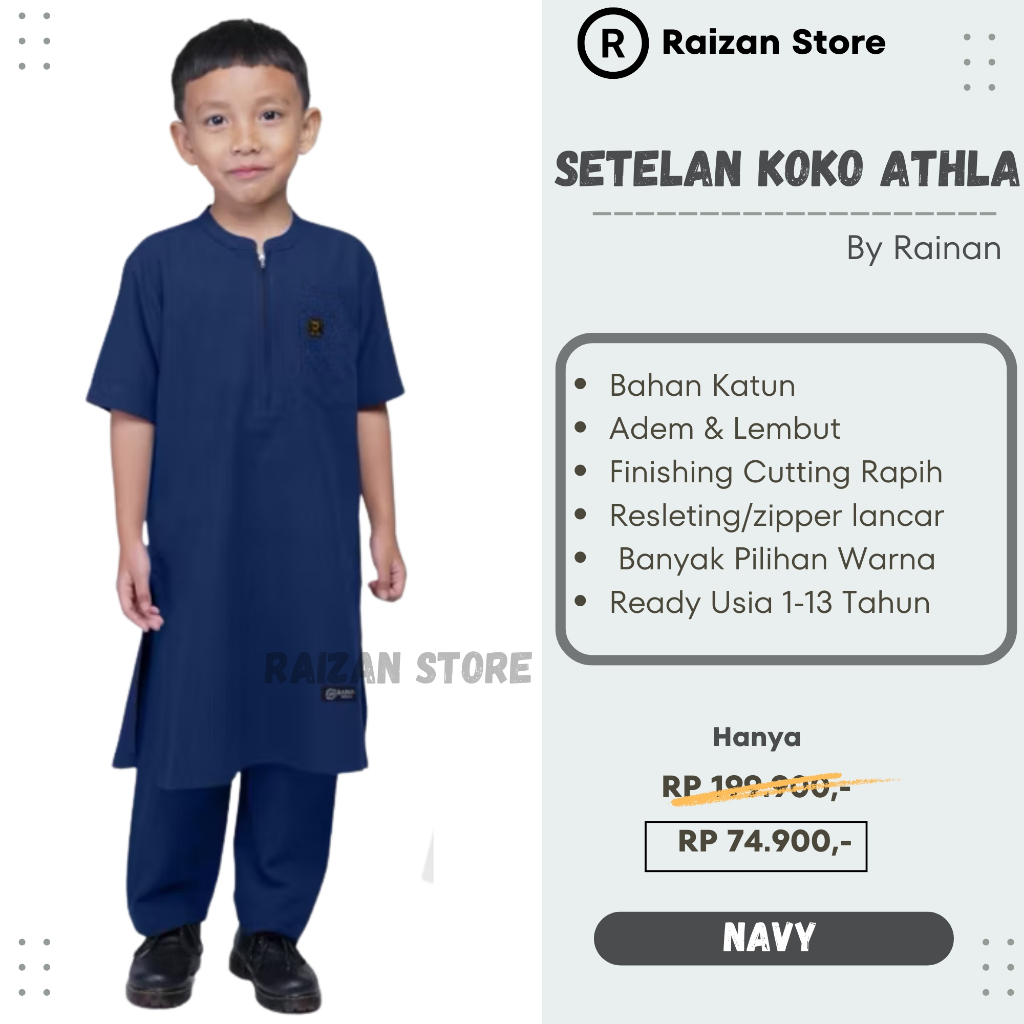 Raizan Store Baju Koko Anak Laki -Laki Setelan Athla By Rainan Ori Bahan Adem Lembut Usia 1-13 Tahun