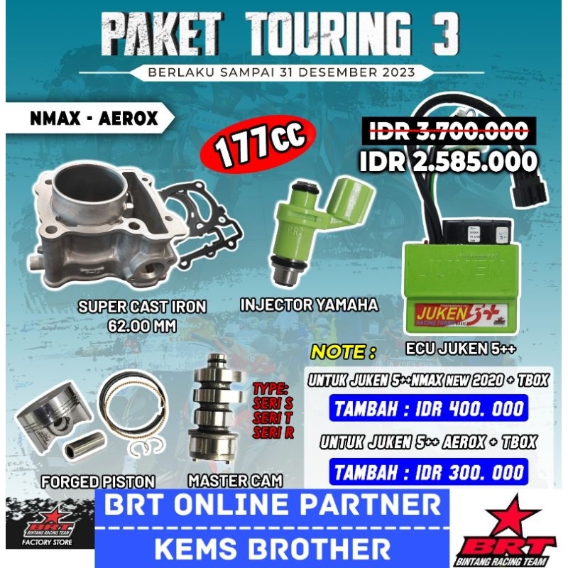 FLASH SALE PAKET BRT NMAX AEROX BLOK PISTON 62 INJEKTOR ECU DAN MASTERCAM TOURING 3 ORIGINAL BRT ( blok piston kit noken as injektor ECU brt )