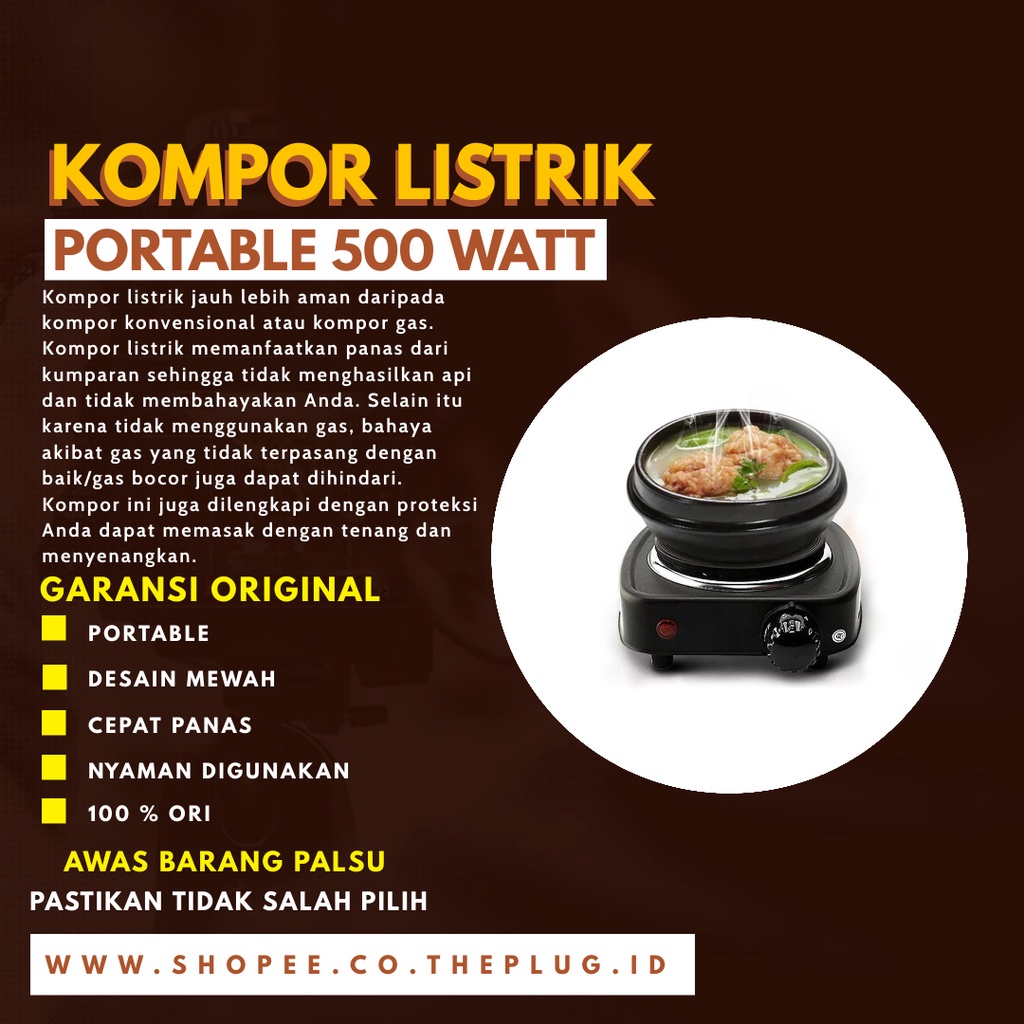 Kompor Listrik Portable Portabel Mini Low Watt Perangkat Dapur Hot Plate Cooking 500W