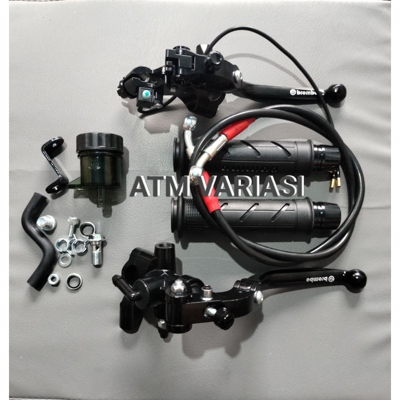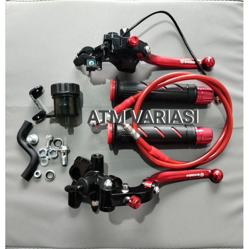 PAKET 4 ITEM MASTER REM ACCOSTATO 1 TABUNG SET KIRI DAN KANAN PLUS HANDGRIP MOTIF SISIK + JALU STANG CNC + SELANG REM PA