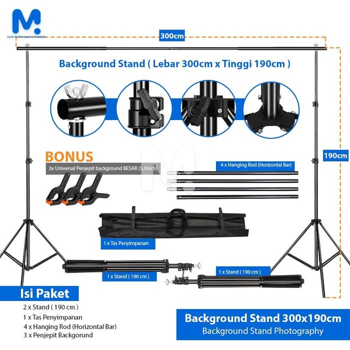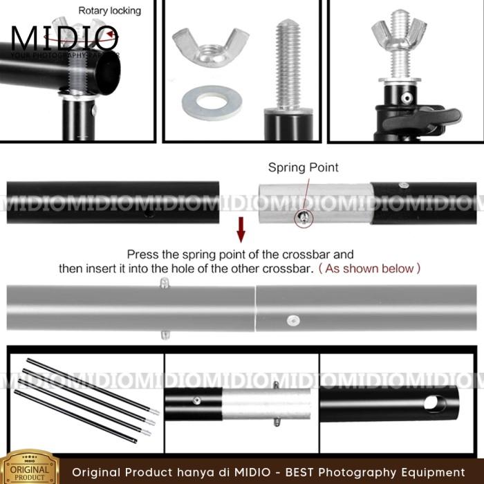 BACKGROUND STAND PORTABLE MIDIO 3M + TAS & 3 PENJEPIT 3.5 INCH UNTUK STUDIO FOTO & BACKDROP