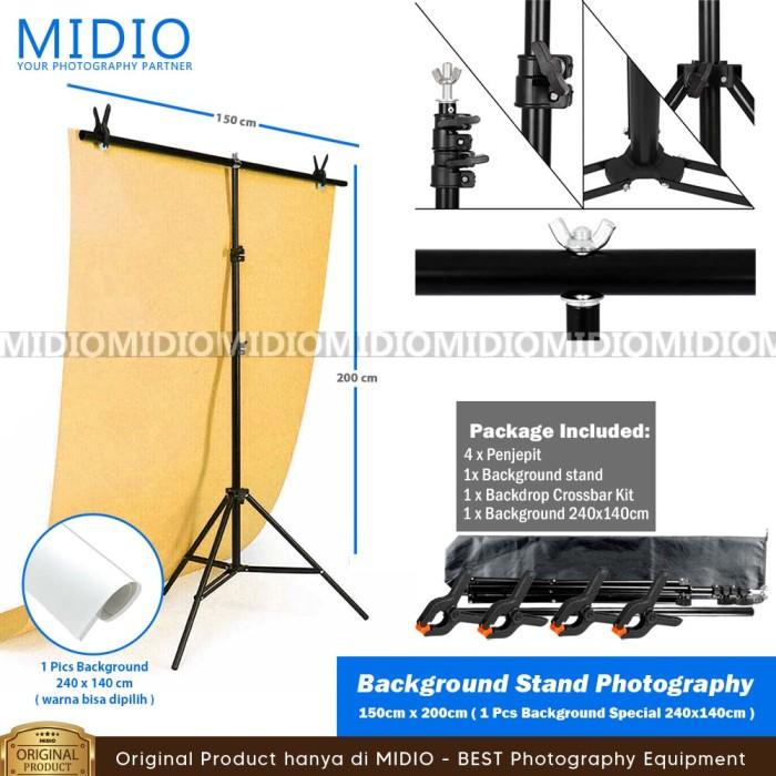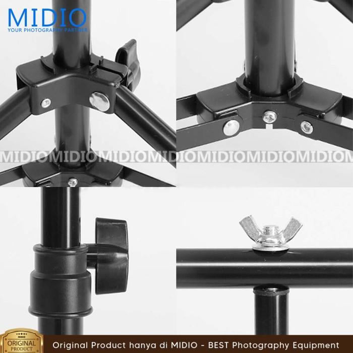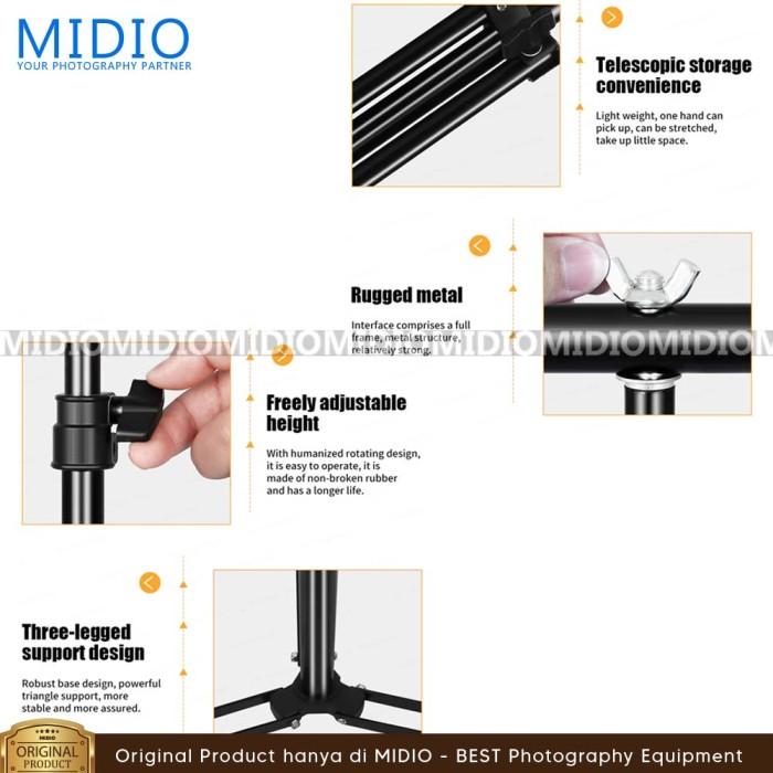 PAKET BACKGROUND STAND 2M + ALAS FOTO MIDIO 240X140CM KULIT SINTETIS DOFF STUDIO FOTO - TINGGI ADJUSTABLE 69CM SAMPAI 200CM - PUTIH