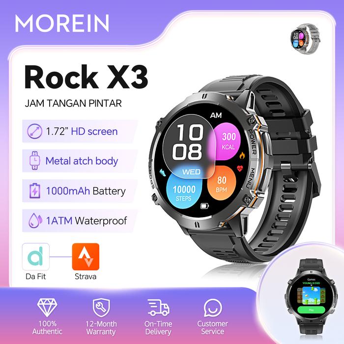 【JAM TANGAN LAYAR BESAR DENGAN DAYA TAHAN 100 HARI & BATERAI 1000MAH】MOREINWEAR SMARTWATCH ROCK X3, LAYAR AMOLED ULTRA-J